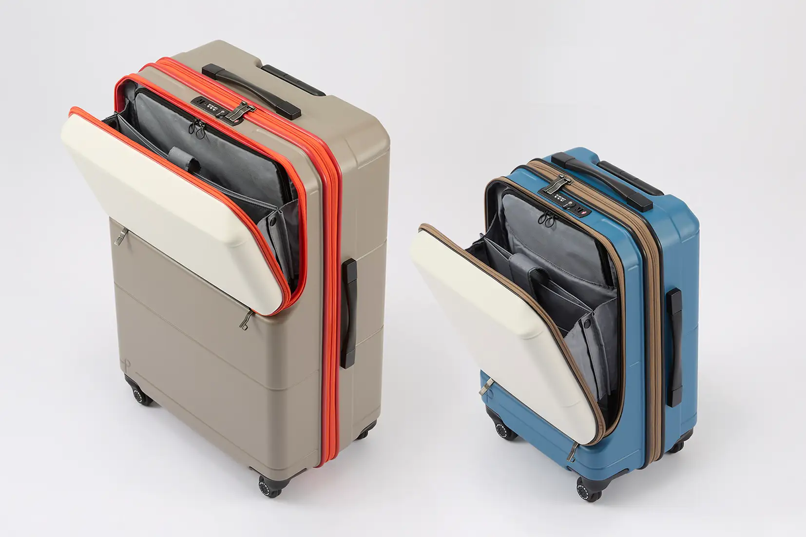 従来のスーツケースはセンターオープン仕様が主流で、開閉時に本体を寝かせる必要があり、移動中は荷物を出し入れしづらいという課題がありました。