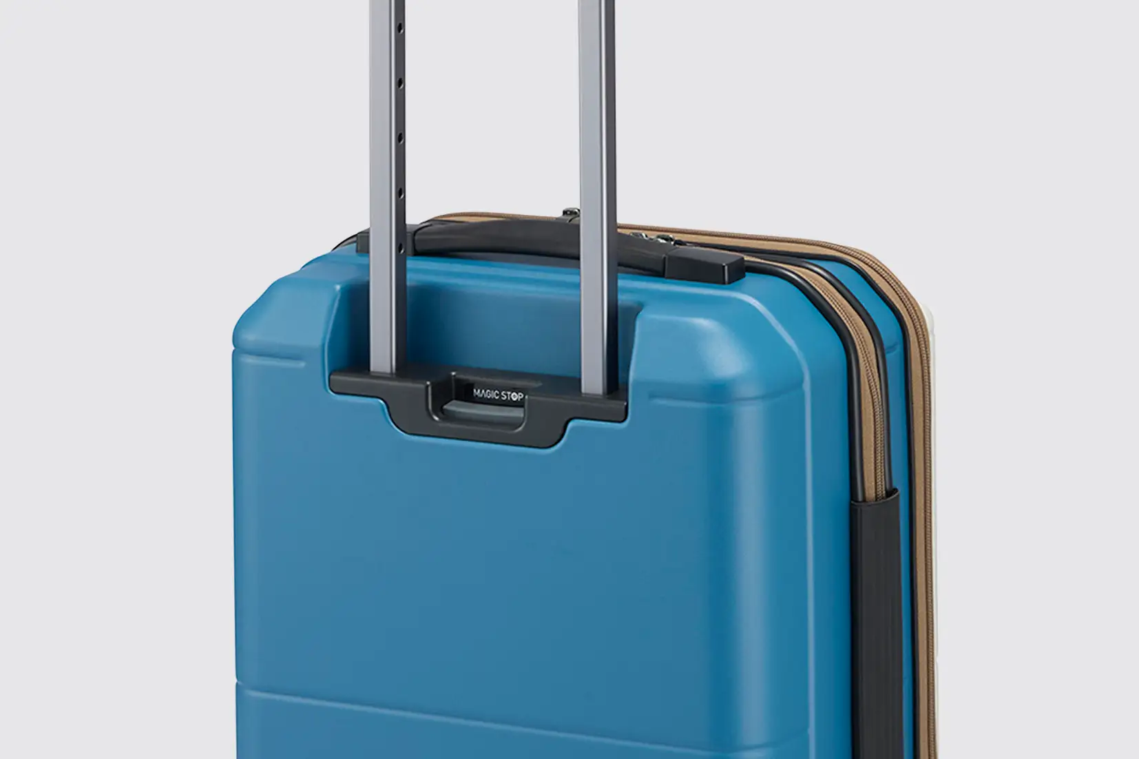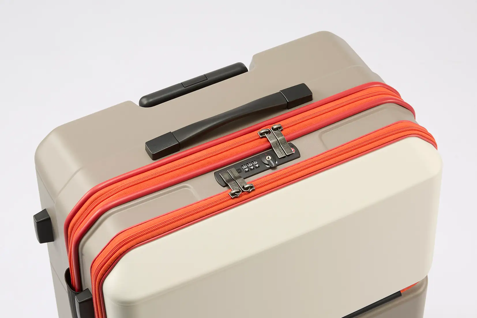 スーツケースを立てたまま開閉できるフロントポケットを搭載。