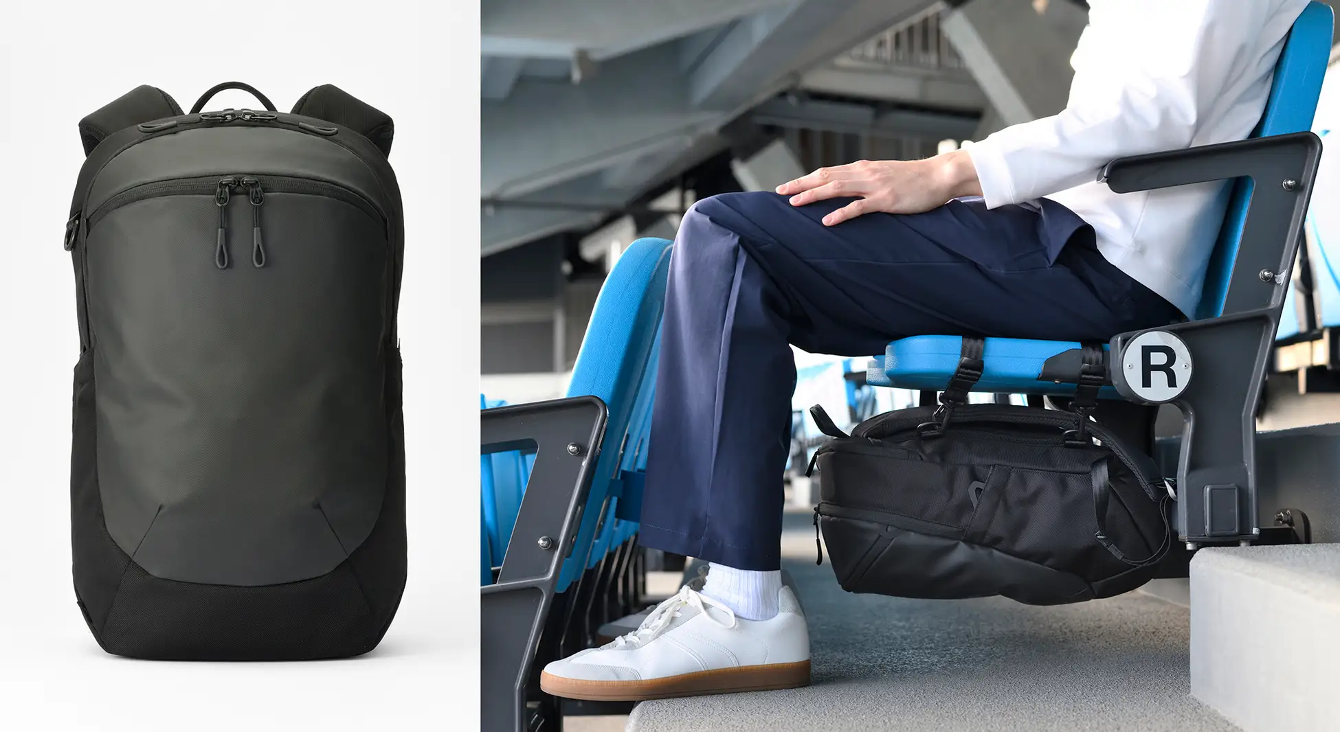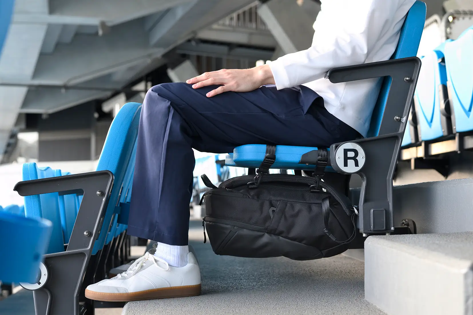 足下に置かずに使用できる構造により、個人の快適さにとどまらず、観戦マナーへの配慮にもつながる設計としています。仕事帰りの観戦から休日まで、幅広いシーンで使えるデザインとしました。