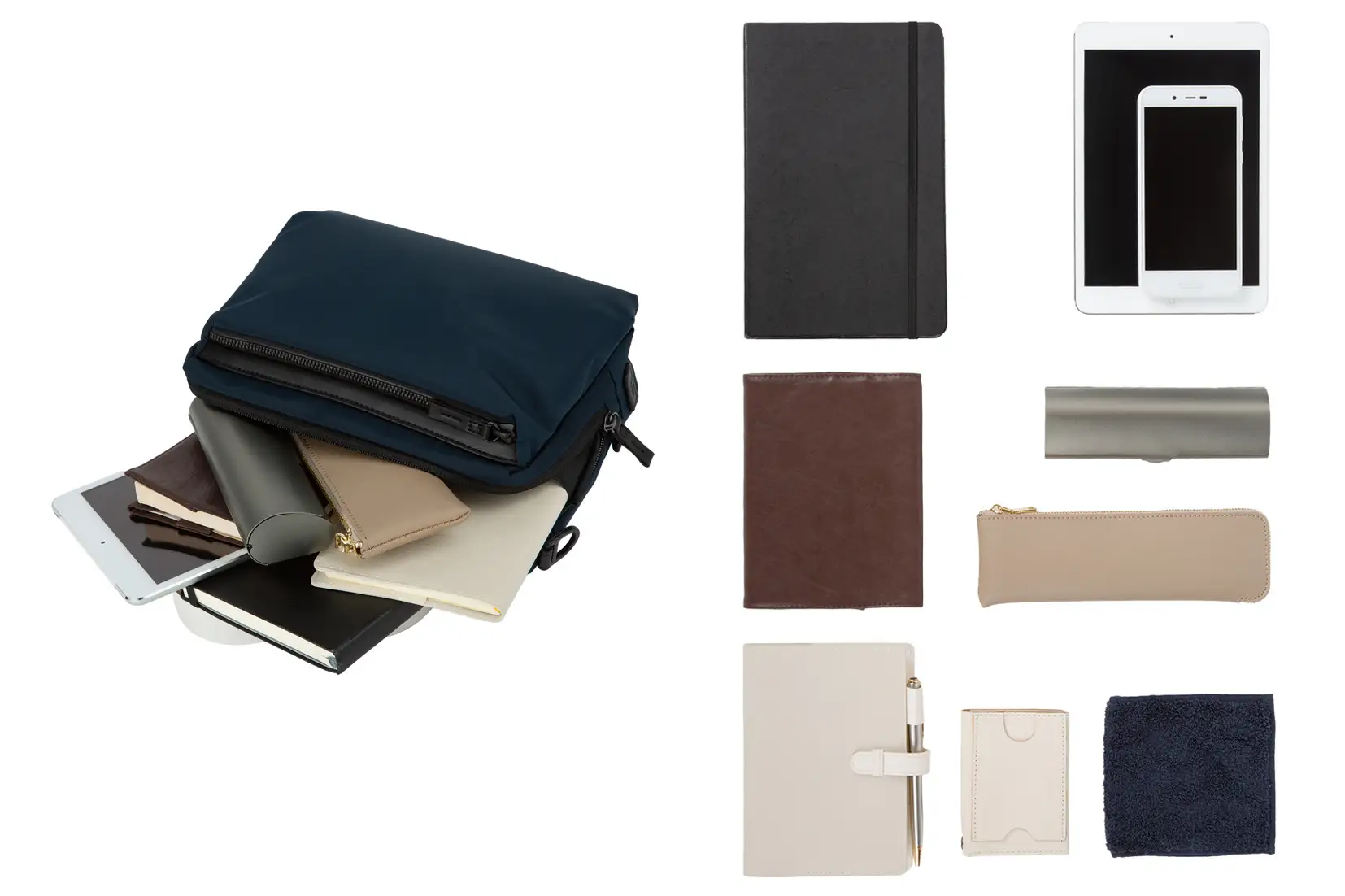 ショルダーと手持ちの2WAY仕様で、シーンに合わせた使い分けが可能です。(ボディバッグ除く)