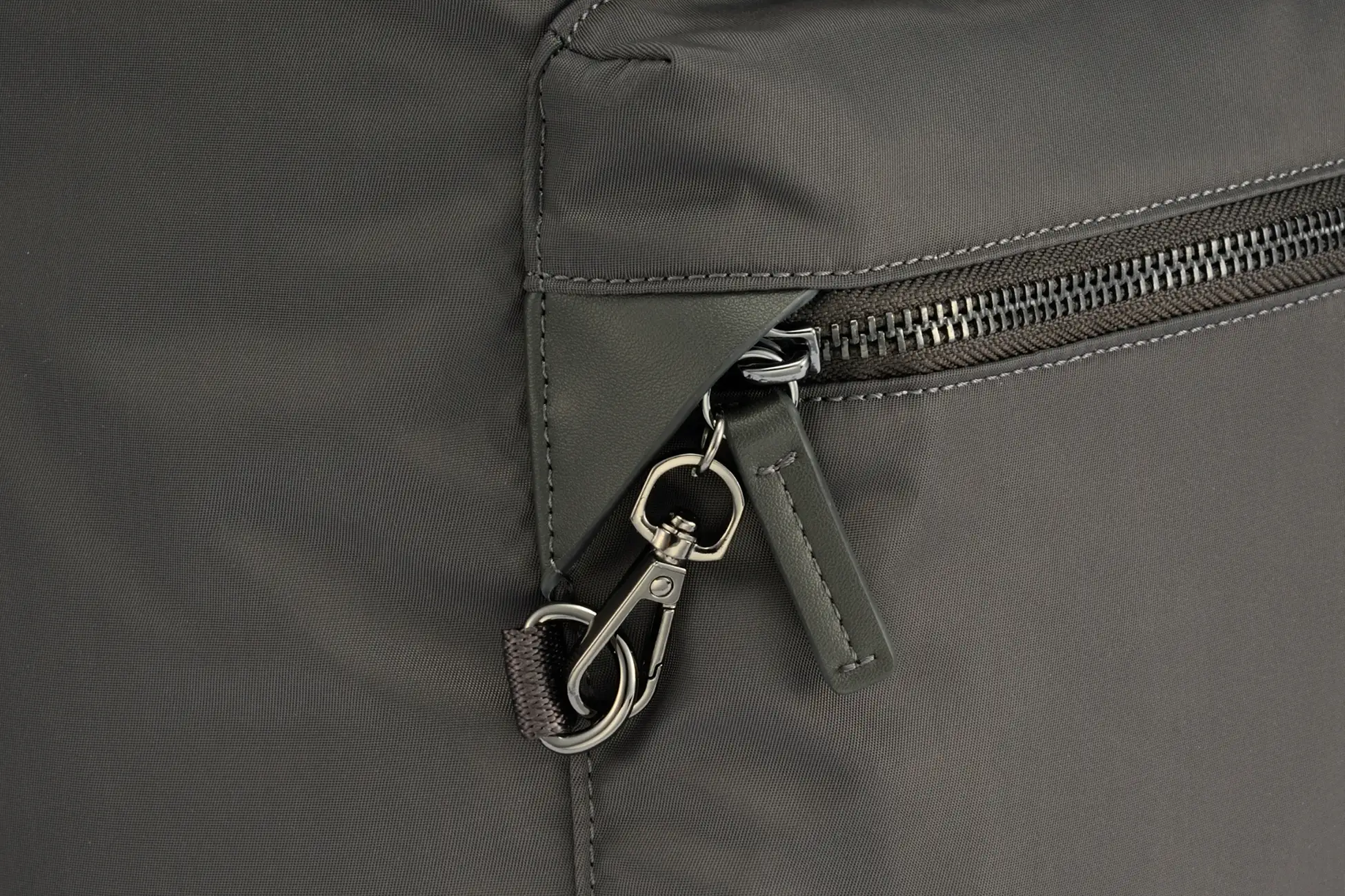 フロントポケットには、セキュリティフック付き。混雑した場所での防犯や、自転車の後ろに乗せた子供が不用意に開けるのを防ぎます。