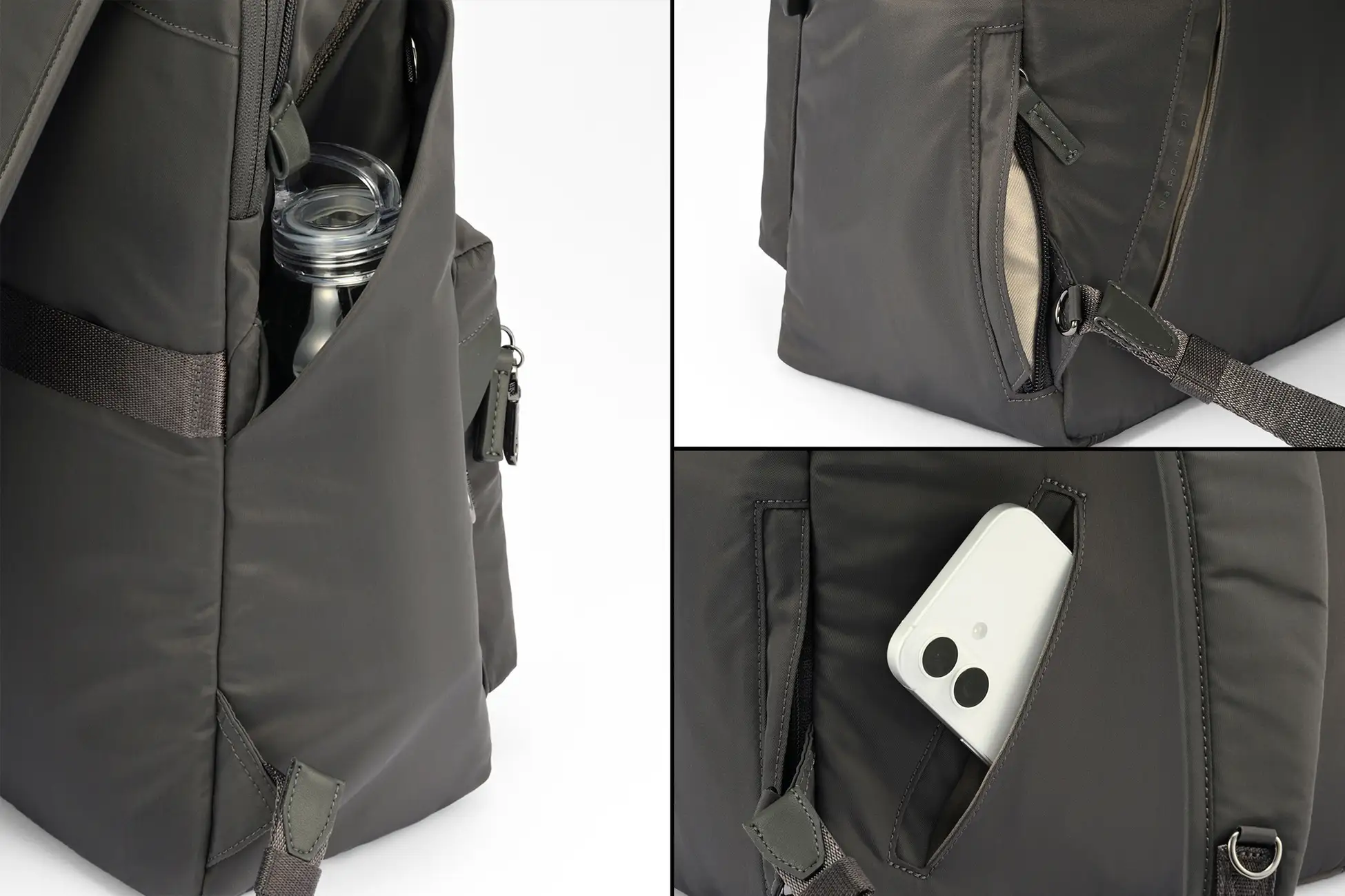 新たに、フロントポケットや付属ポシェットの拡大や、背負ったままアクセスできるサイドポケットの追加、ショルダーハーネスの強化など、使い勝手を向上させています。内装には、引き続きポケットティッシュ専用ポケットや、ポリ袋を固定し簡易ごみスペースにもなるスナップ付きボトルホルダーなど、実用的でユニークなポケットを搭載しています。付属のポシェットは、送迎時や社内移動など、両手を自由に使いたい時に役立ちます。また、本体生地には弱撥水加工を施し、雨除けフラップ付きのPC収納部も備えているため、雨の日も安心です。