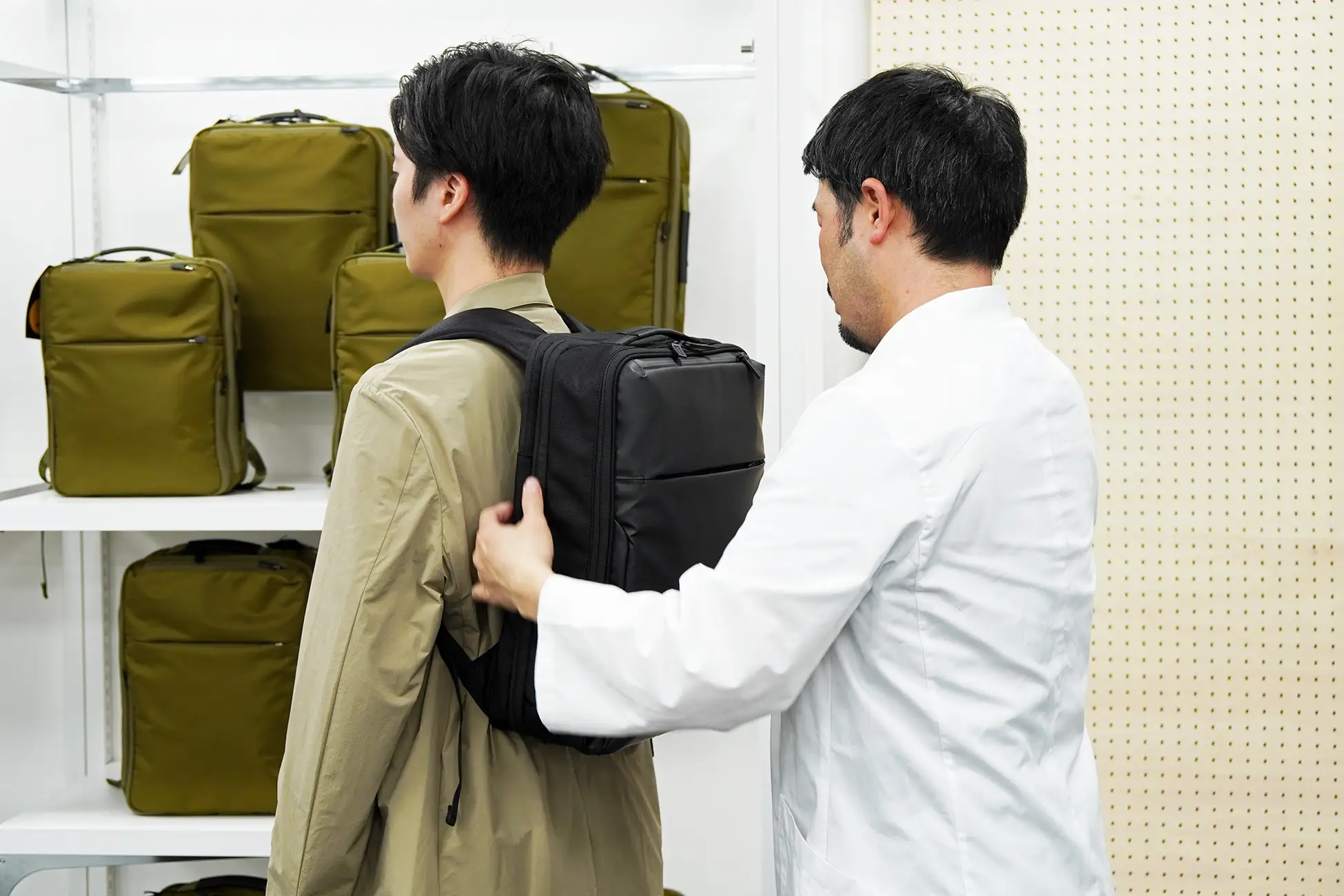 体験型イベント「ハーネスフィットラボ」では、店頭スタッフによる「ガジェタブルDP2 4U」のフィッティング提案や、「4Uハーネス」開発者の博士(工学)若生 然太 がお客様の背中を計測・提案するサービスを日数限定で行います。