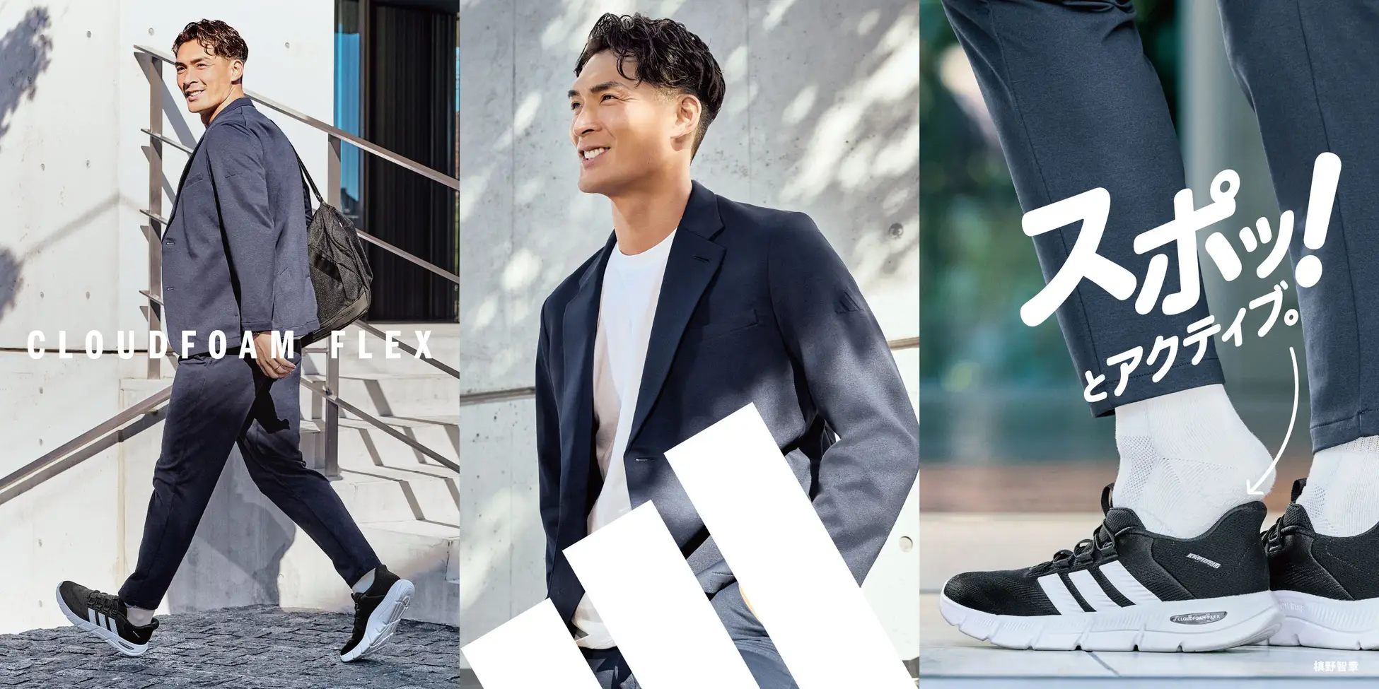 キャンペーンビジュアルには、プロサッカーチームの槙野 智章監督、青山学院大学陸上競技部男子長距離ブロックの原 晋監督、プロゴルファーの渋野 日向子選手を起用。異なるシーンで活躍する3名のアスリートを通じ、「CLOUDFOAM FLEX RAPIDFIT」が幅広い世代のアクティブな日常を支えるモデルであることを発信いたします。