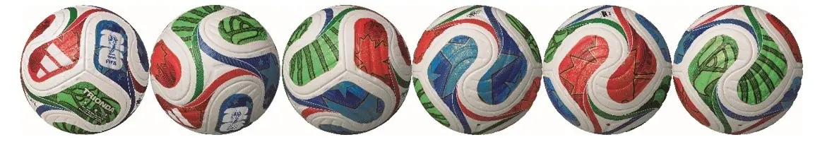 名称は「チームスピリット」が加わることで、より強くなれるという意味。革新的な14枚のパネル構造を採用し究極の球体を実現することで、より正確なコントロール性を追求。放射状ラインのグラフィックは躍動とエネルギーを象徴。「白」と「黒」は開催国ドイツ代表チームの伝統色、ファインゴールドは FIFA ワールドカップ™のトロフィーにインスパイアされています。