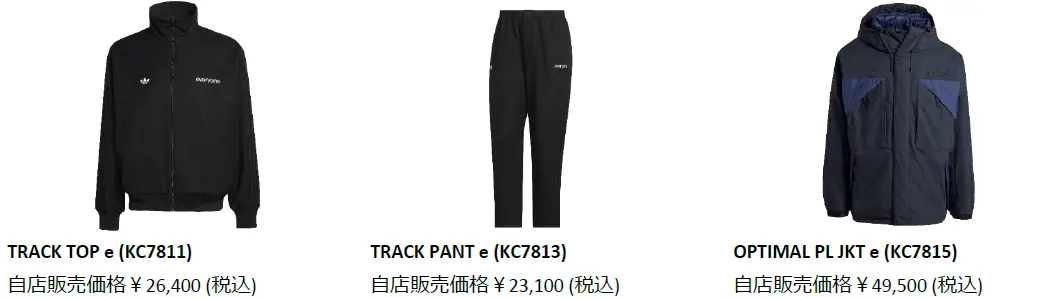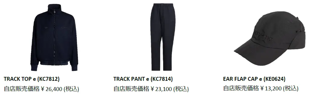 また、adidas Originalsの定番、「FIREBIRD (ファイヤーバード)」にはウール素材を採用。「TRACK TOP e」のフロントには両ブランドの刺繡ロゴを施し、everyoneらしいシルエットにジャケット仕様である内ポケットや縦のジップポケットを取り入れることで、現代的にアップデートしています。この他、ジャケットとセットアップで着用できる「TRACK PANT e」やeveryoneの名品、OPTIMALジャケットをベースに、PrimaLoft®Gold インサレーションを中綿に使用し、通気性と撥水性の高い2レイヤーシェル構造、everyoneのアイコニックな2色を採用した「OPTIMAL PL JKT e (オプティマル ジャケット)」、フロントにeveryoneロゴとトレフォイルを加えたグラフィック刺繡を施し、「OPTIMAL PL JKT e」と同様の2レイヤーのシェル素材を採用した「EAR FLAP CAP e (イヤー フラップ キャップ)」を展開します。