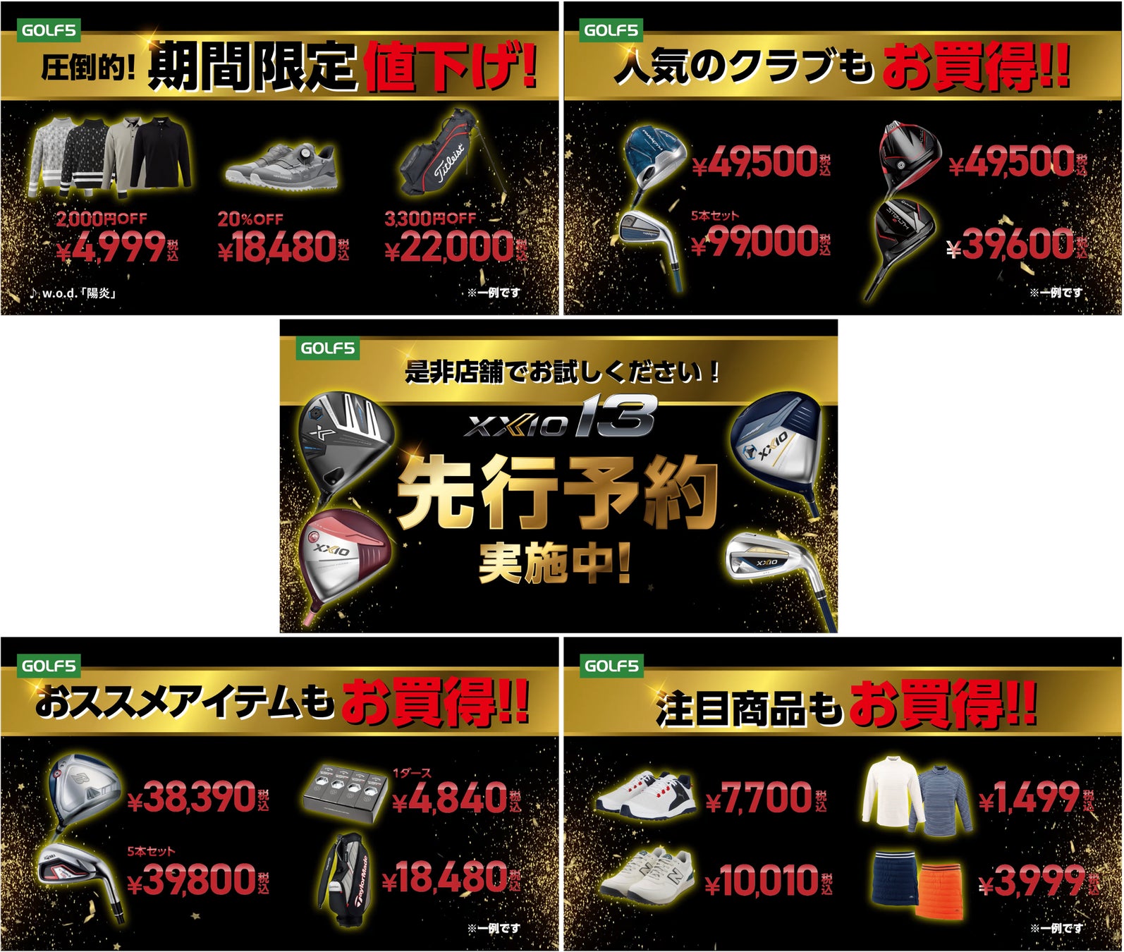 そして待望のゼクシオ13シリーズ先行予約を実施。アルペンポイントが15%還元となり、ゴルフ5全店で7番ウッドも試打可能です。