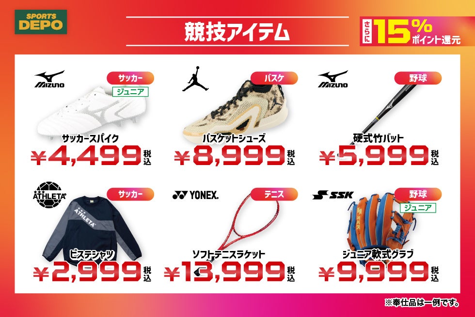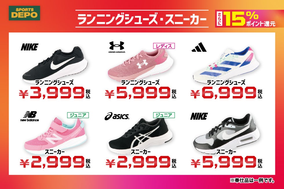 「スポーツデポ フジグラン東広島店」は、初心者から上級者の方まで、ランニング・バスケ・サッカーなどの競技カテゴリーの商品ラインナップが充実しています。