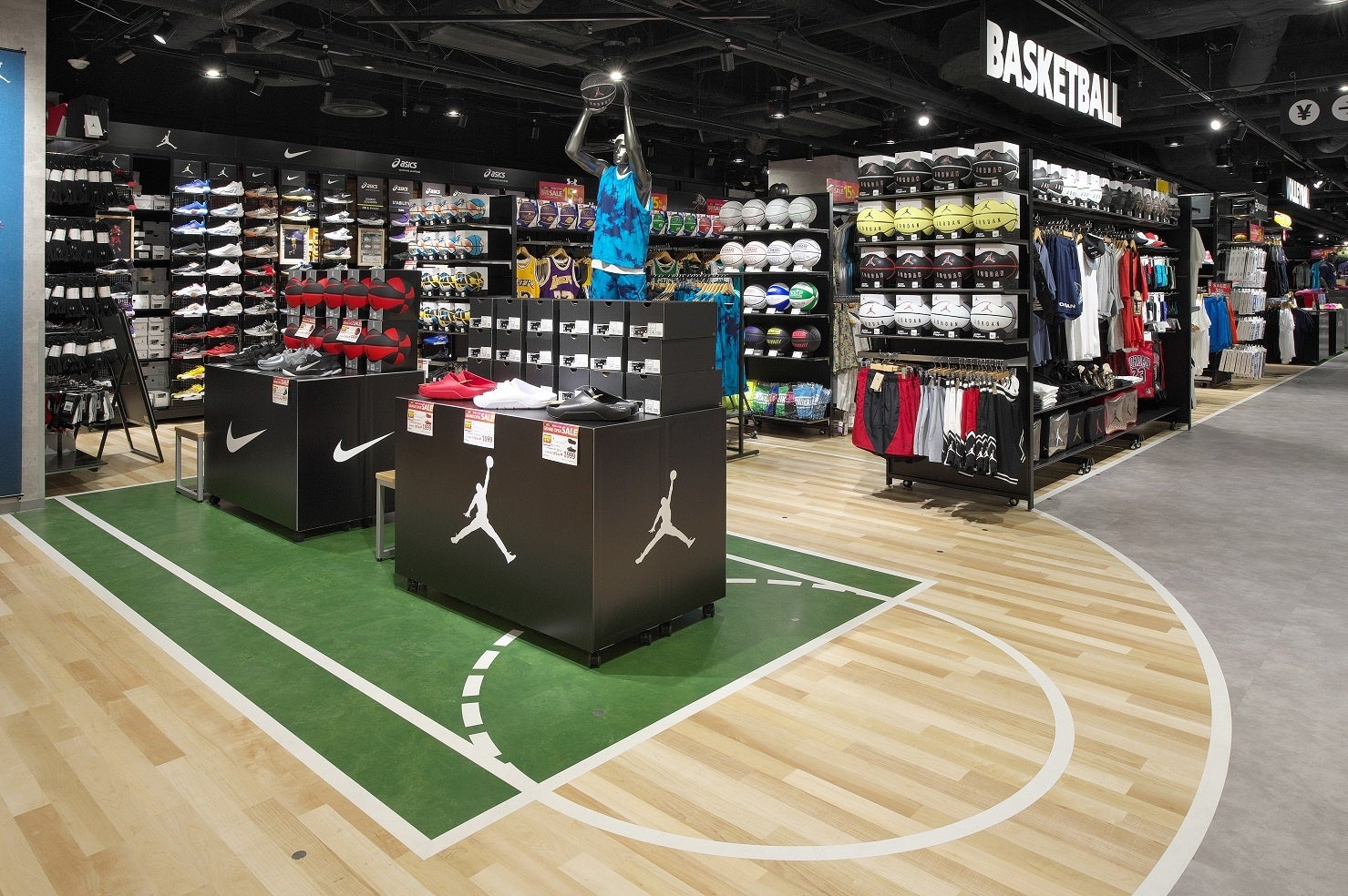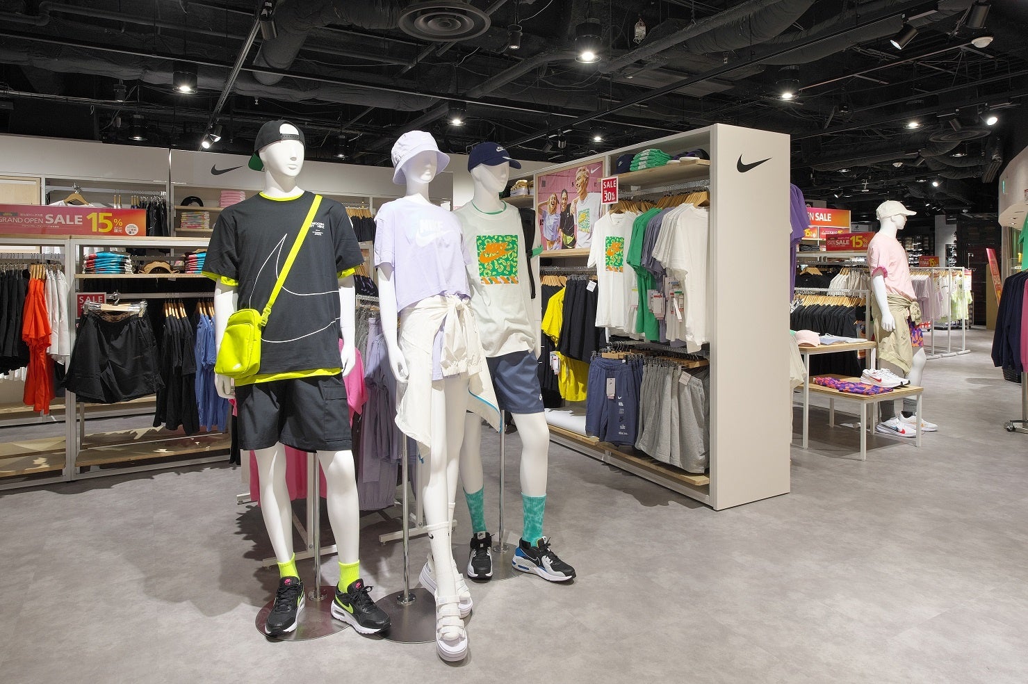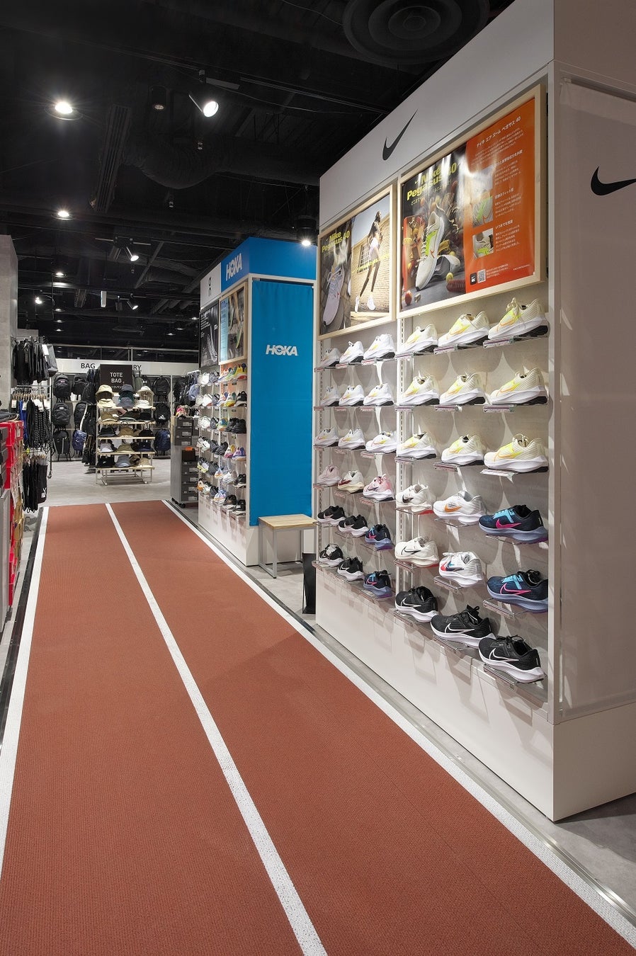 店内入口からTHE NORTH FACEやNIKEといった有名スポーツブランドをブース展開し、各ブランドの世界観を表現しています。