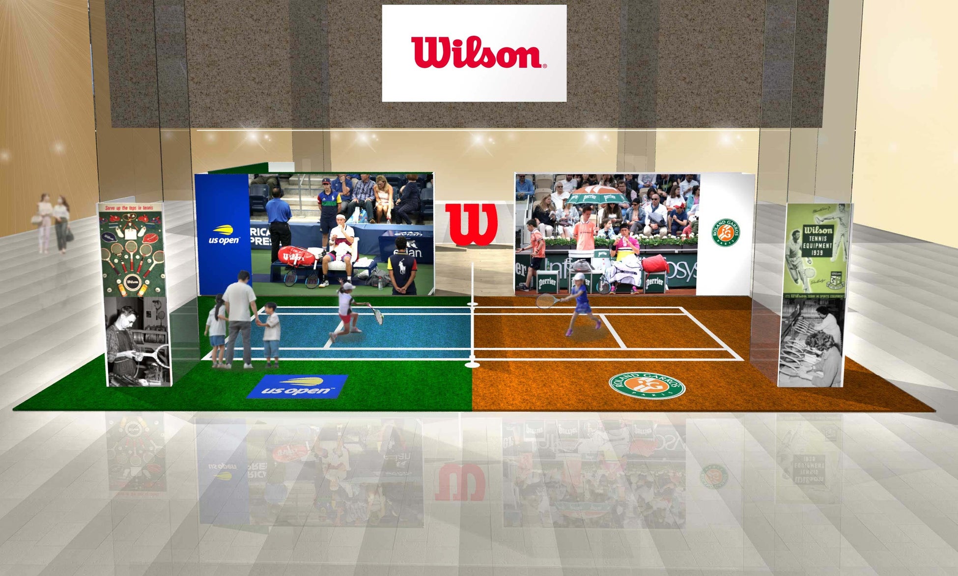 テニスの四大大会、「全仏オープン」「全米オープン」のオフィシャルボール・サプライヤーをはじめ、錦織圭選手、ステファノス・チチパス選手などの契約プロテニスプレーヤーやロジャー・フェデラー氏を擁するウイルソンの世界観を存分に落とし込んだ、テニス観戦ファンもプレーヤーも楽しめる空間を提供いたします。