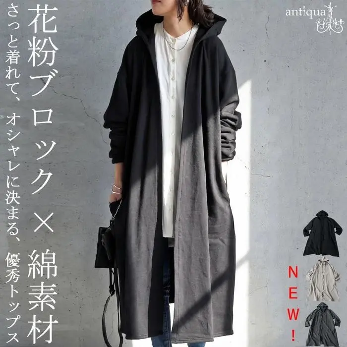 同じ花粉が付きにくい特殊加工×綿100%素材を使用したロング丈タイプのアウターも展開しています。