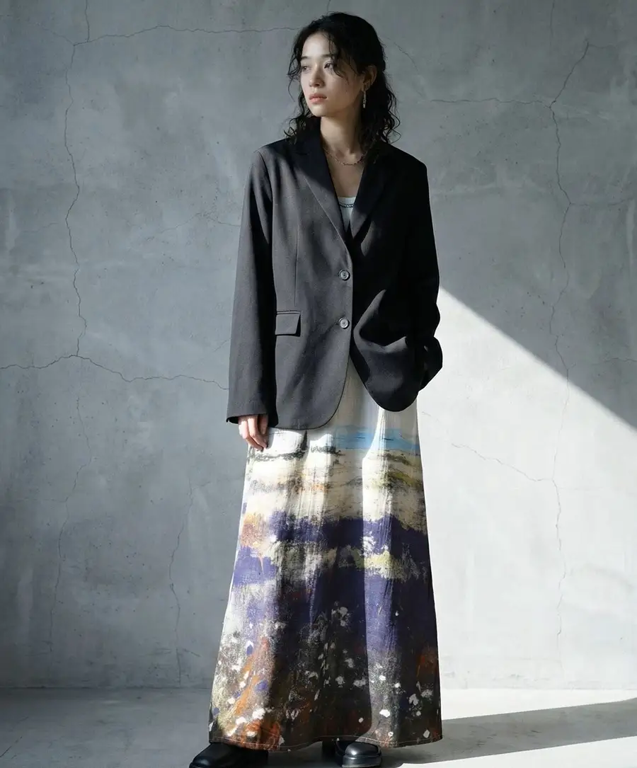 ジャケットやパンツなど、セットアップでも着用できるアイテムを展開し、今季のantiquaを象徴するシリーズとして展開しています。