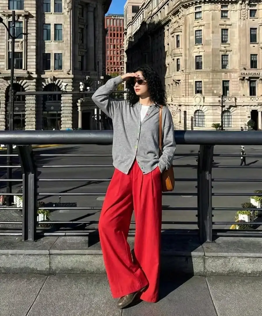 ダブルタックが縦のラインを強調し、ワイドながらもすっきりとした美脚シルエットを演出します。