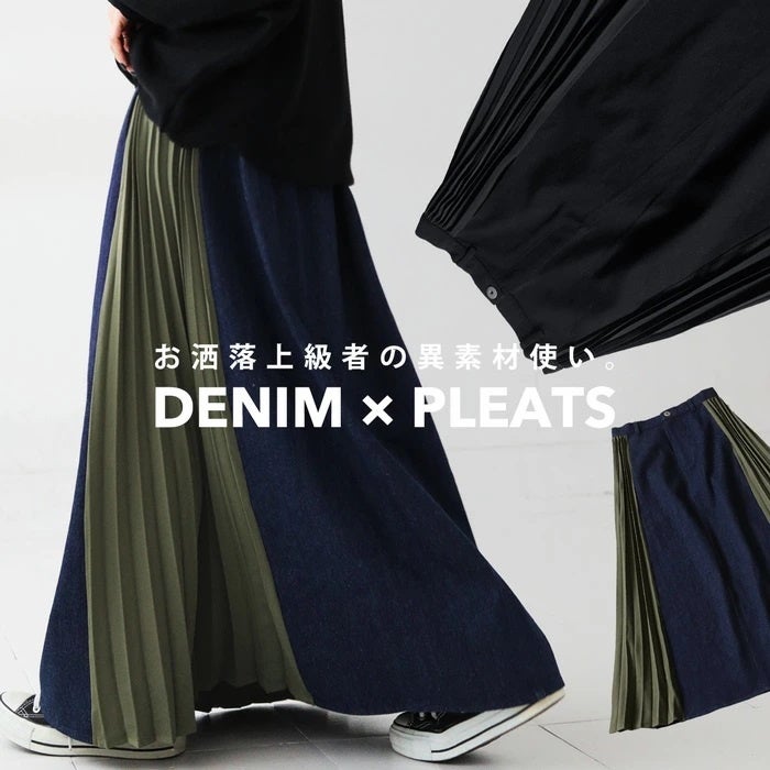 カジュアルな印象のデニムにプリーツを取り入れて、女性らしい品をプラス。
