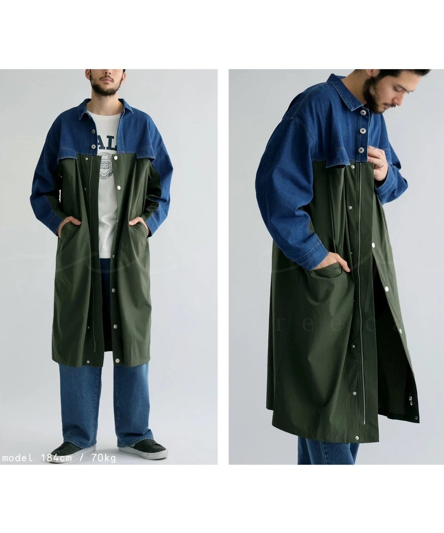 ドッキングデザインで周りと差を付けるロングコートが登場!!