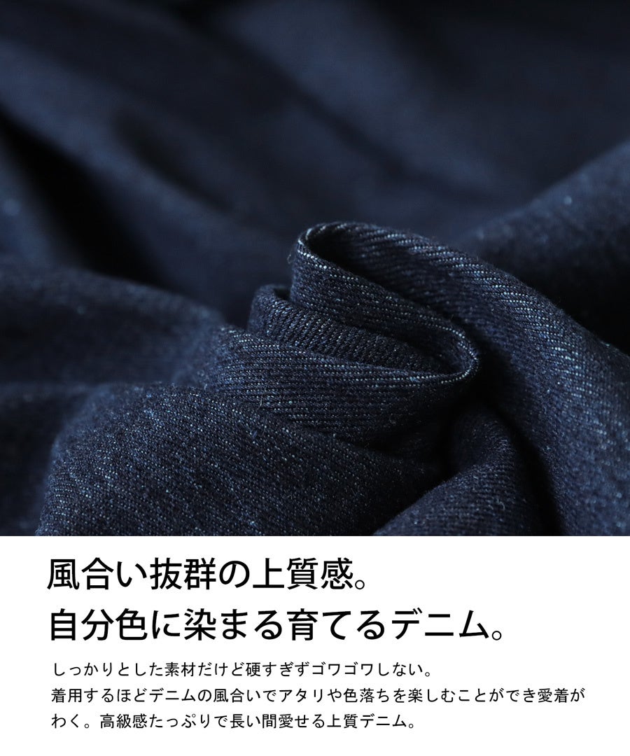 ノンウォッシュデニムの味わいある雰囲気がさらにこなれ感をアップしてれます。