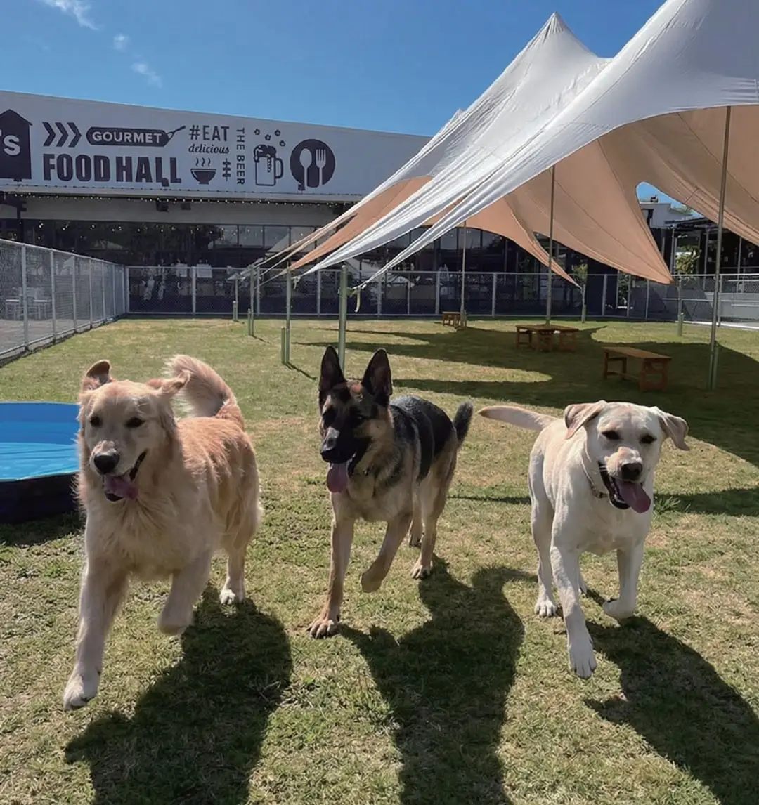 WHATAWON内にある屋外ドッグランは、開放感のある人工芝スペース。