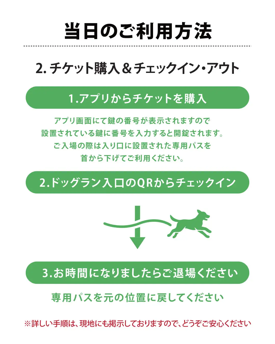 ※ドッグランの詳しい利用ルール・アプリ登録方法については、