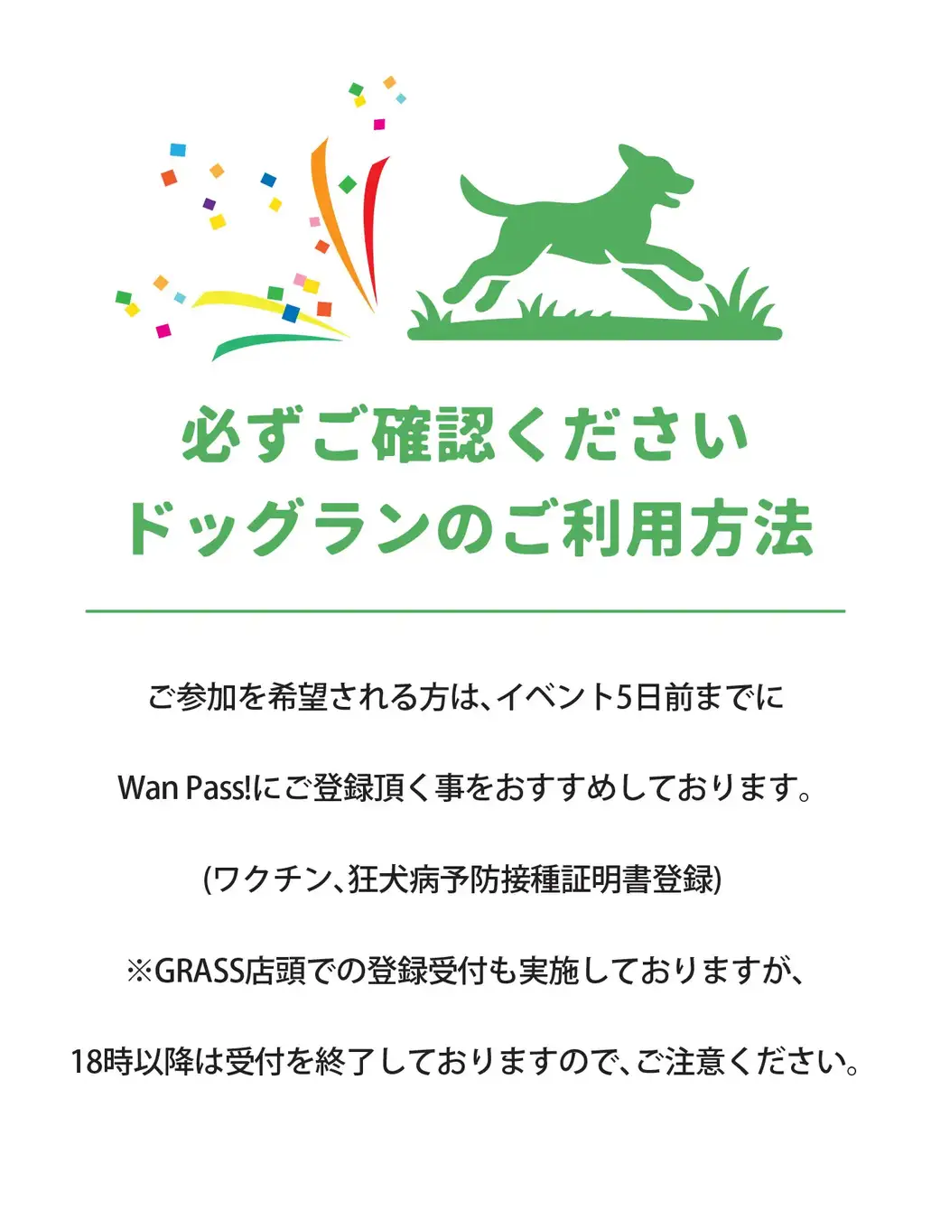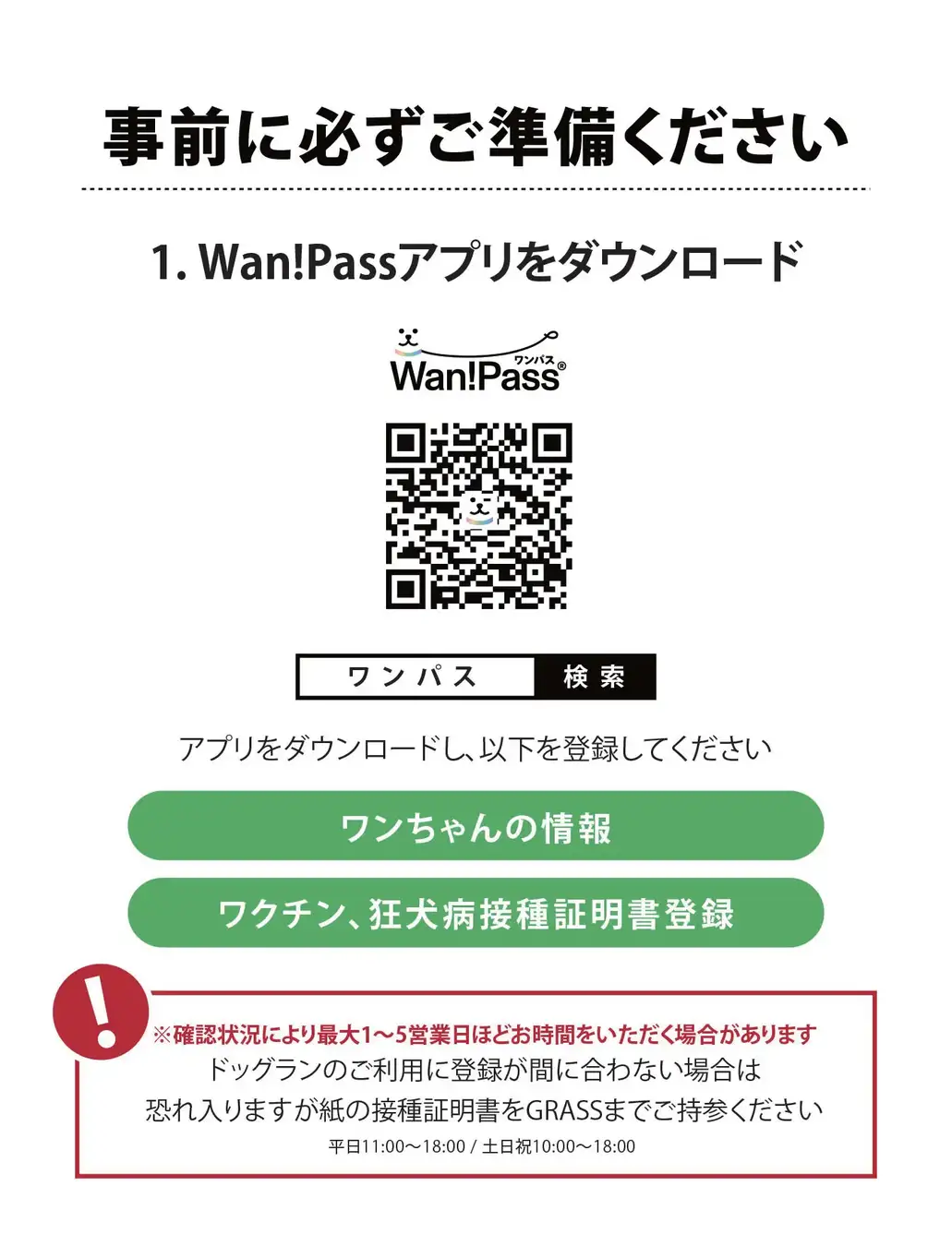 ドッグランのご利用には、Wan!Pass(ワンパス)への事前登録を推奨しています。