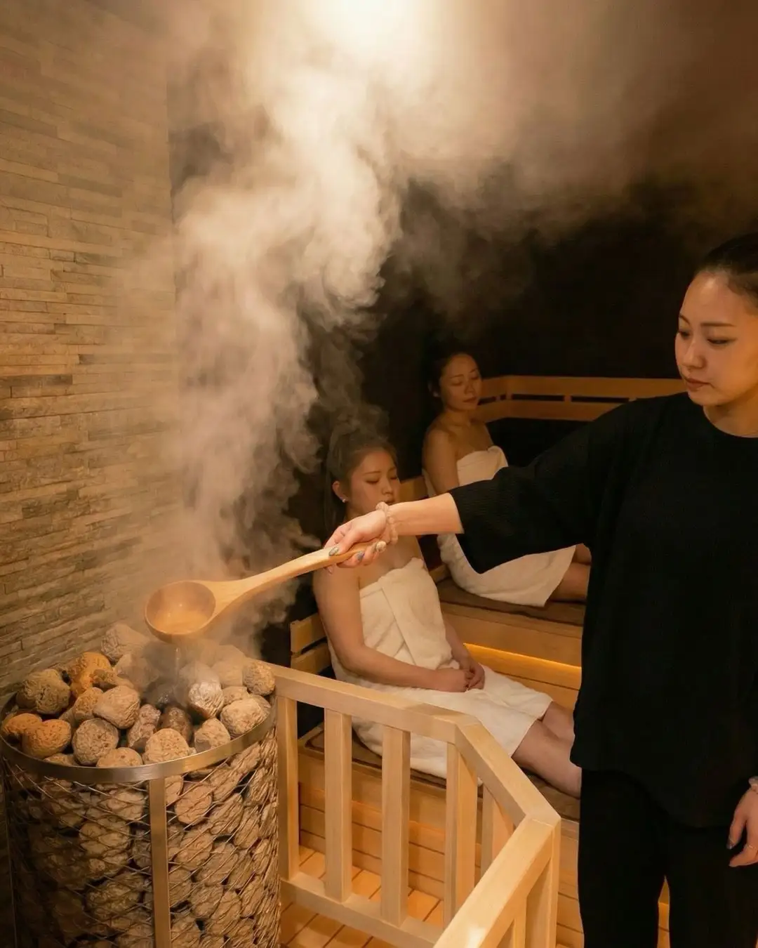 香り・熱・湿度を丁寧に整えたロウリュで、
