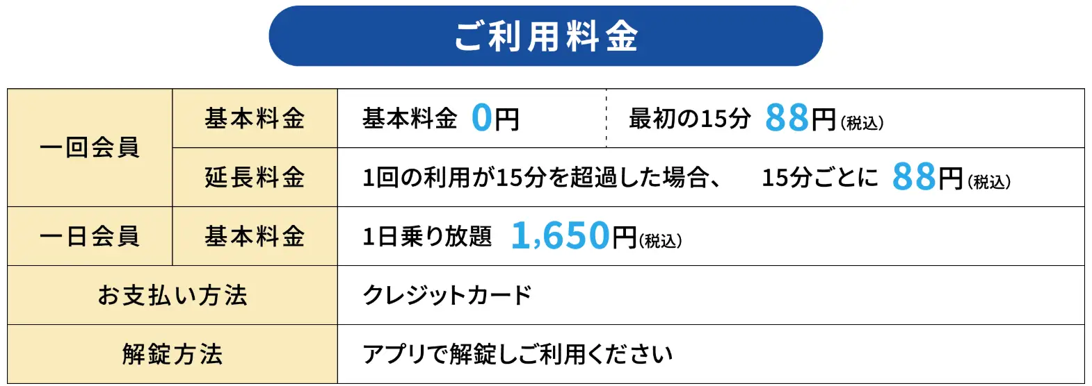 「少しだけ乗りたい」「一日しっかり使いたい」どちらのニーズにも対応できる料金設定です。
