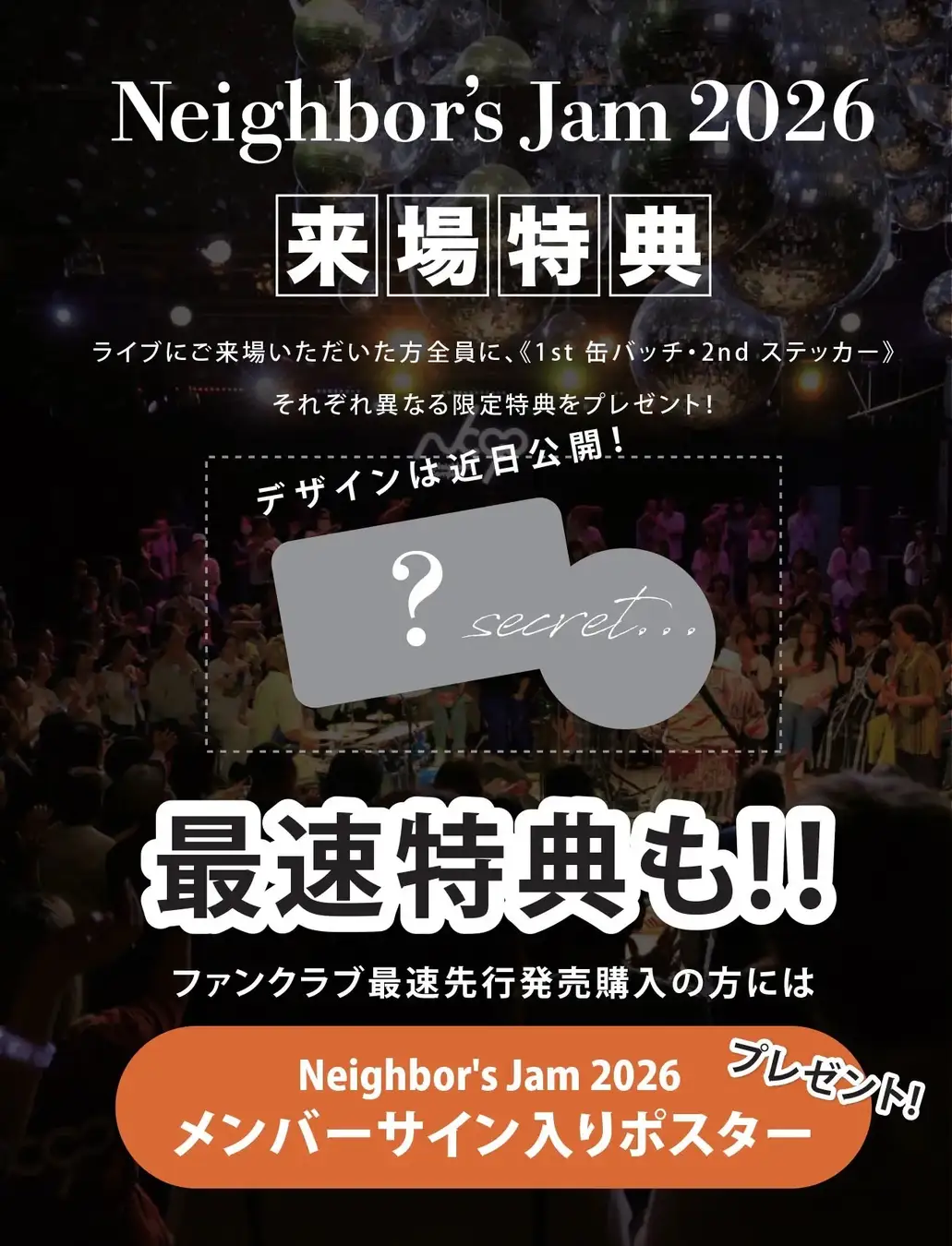 ご来場の方全員に『Neighbor’s Jam 2026』限定缶バッジ&ステッカーをプレゼント。