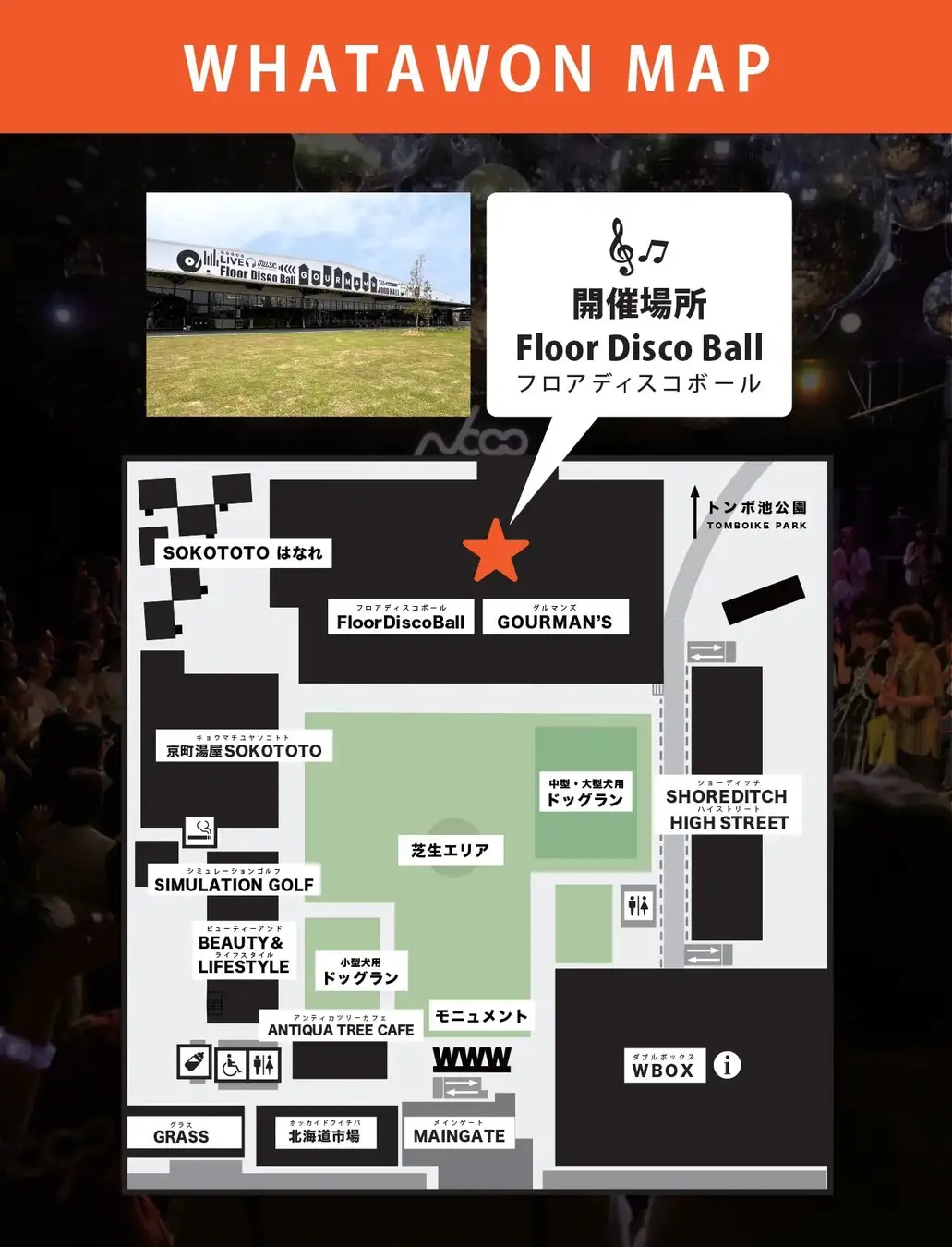 『Neighbor’s Jam 2026』の舞台となるのは、WHATAWON内「Floor Disco Ball」に設けられた360°ステージ。ステージをぐるりと囲む観客席は、どの位置からでもアーティストの表情や息遣いを感じられる特別な空間です。