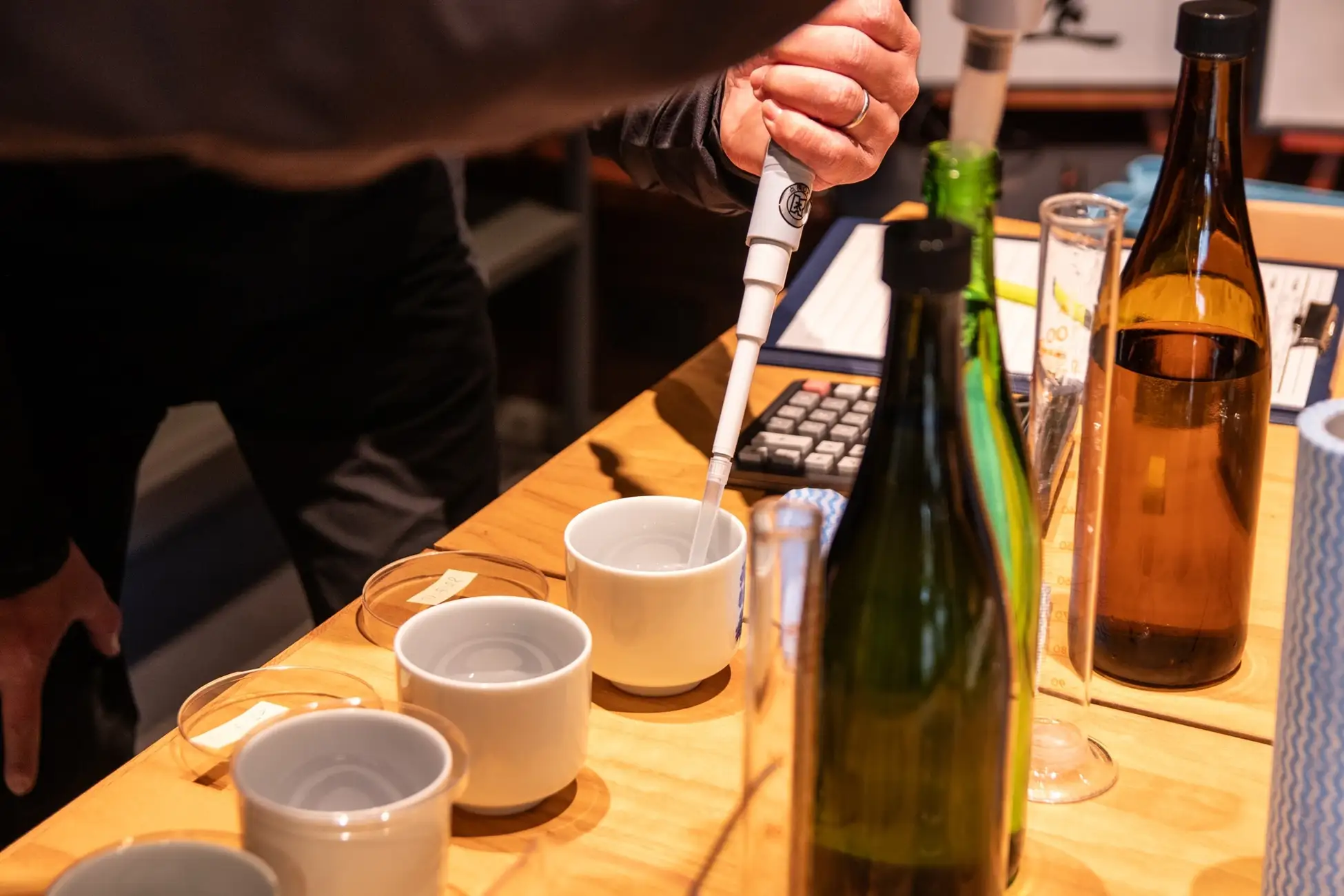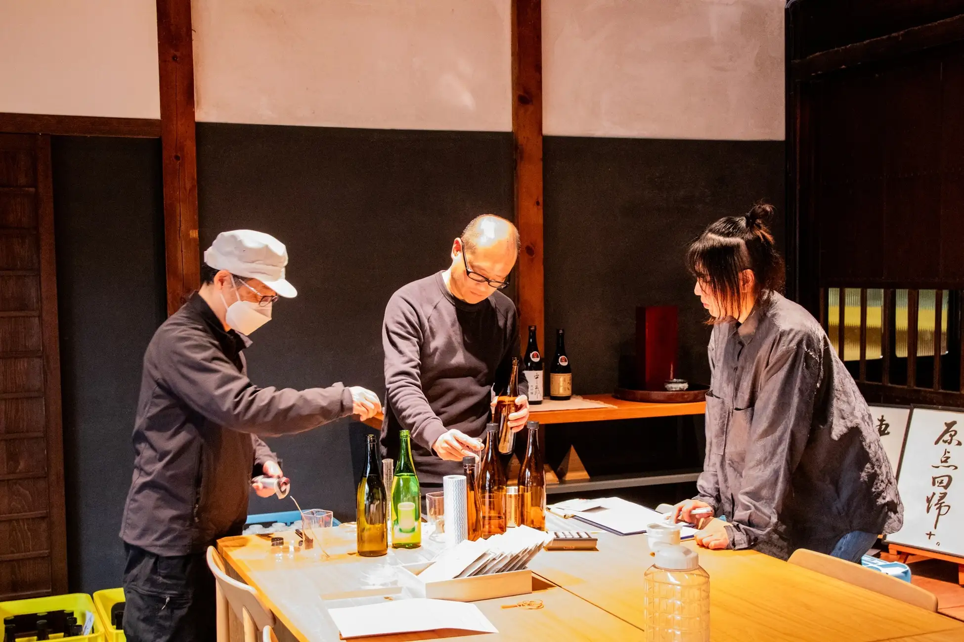 四十八漁場、なきざかな、日本橋 墨之栄では、鮮魚・魚貝メニューとの組み合わせ、SAKE BAR オトナリではシグニチャーである生ハムとの相性を考えながら、それぞれの担当者が慎重に何度もテイスティングしながら配合しました。