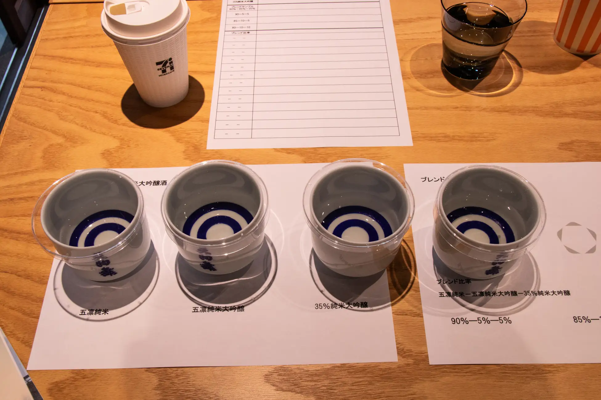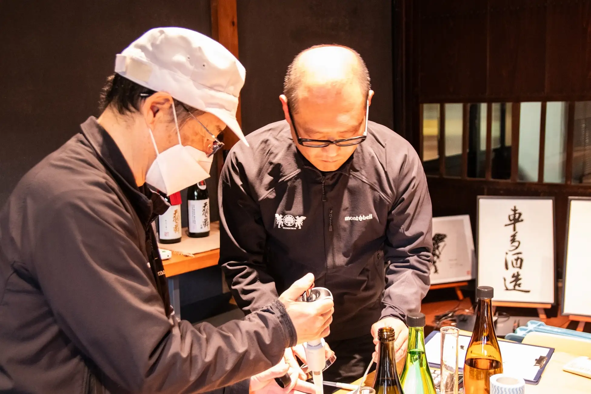 当社の担当者が石川県・車多酒造を訪れ、数ある原酒の中から「純米」と「純米大吟醸」のテイスティングを重ね、杜氏のアドバイスを受けながら0.5%単位の配合比率を模索して完成させたオリジナルブレンドの日本酒です。