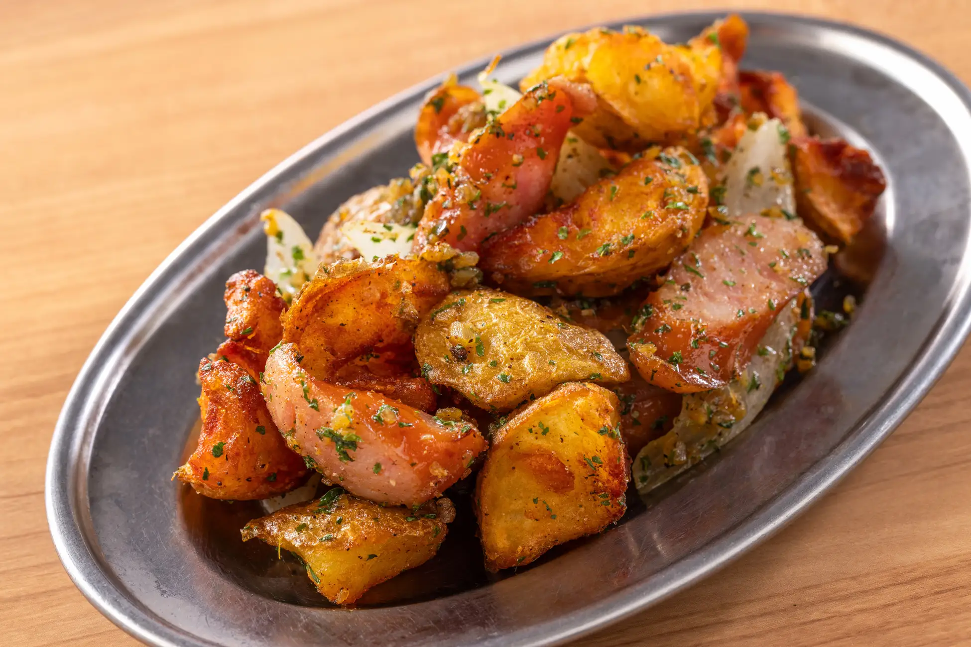 ほくほく食感と甘味が特長の新じゃがとウィンナー、玉ねぎでジャーマンポテトに。