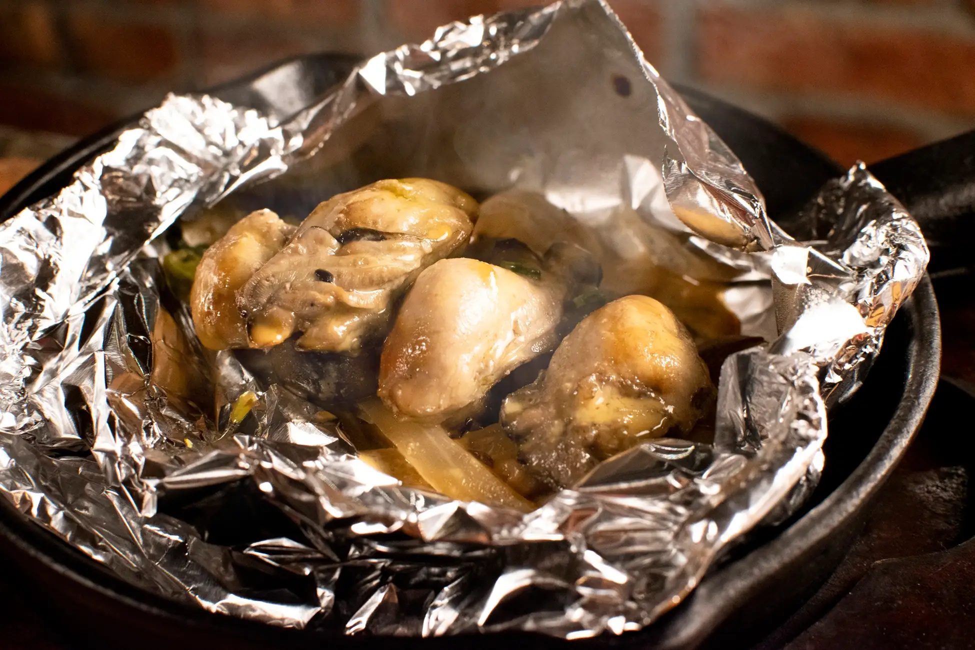 冬の人気商品。牡蠣を肝入りの特製ソースでホイル焼きに仕上げました。ホイルを開けた瞬間に立ち込める濃厚な香りとぷっくりとした牡蠣は冬ならではの味わいです。