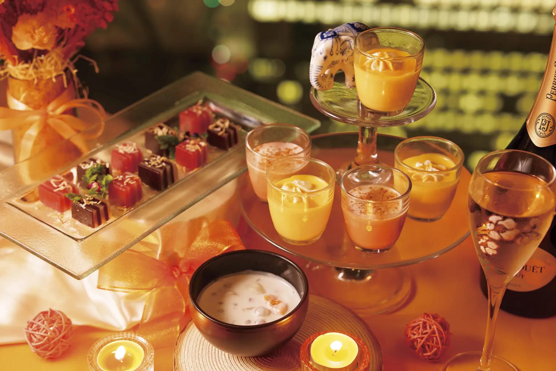 デザートには、フレッシュマンゴーともち米のデザート(カオニャオ マモアン)をはじめ、マンゴプリンやタピオカバー、ココナッツケーキなど、タイならではの甘味をブッフェスタイルでお楽しみいただけます。また、バレンタインシーズンに合わせ、オレンジの香りとチョコレートのほろ苦さが楽しめる「オランジェット」を本イベント限定でご提供。