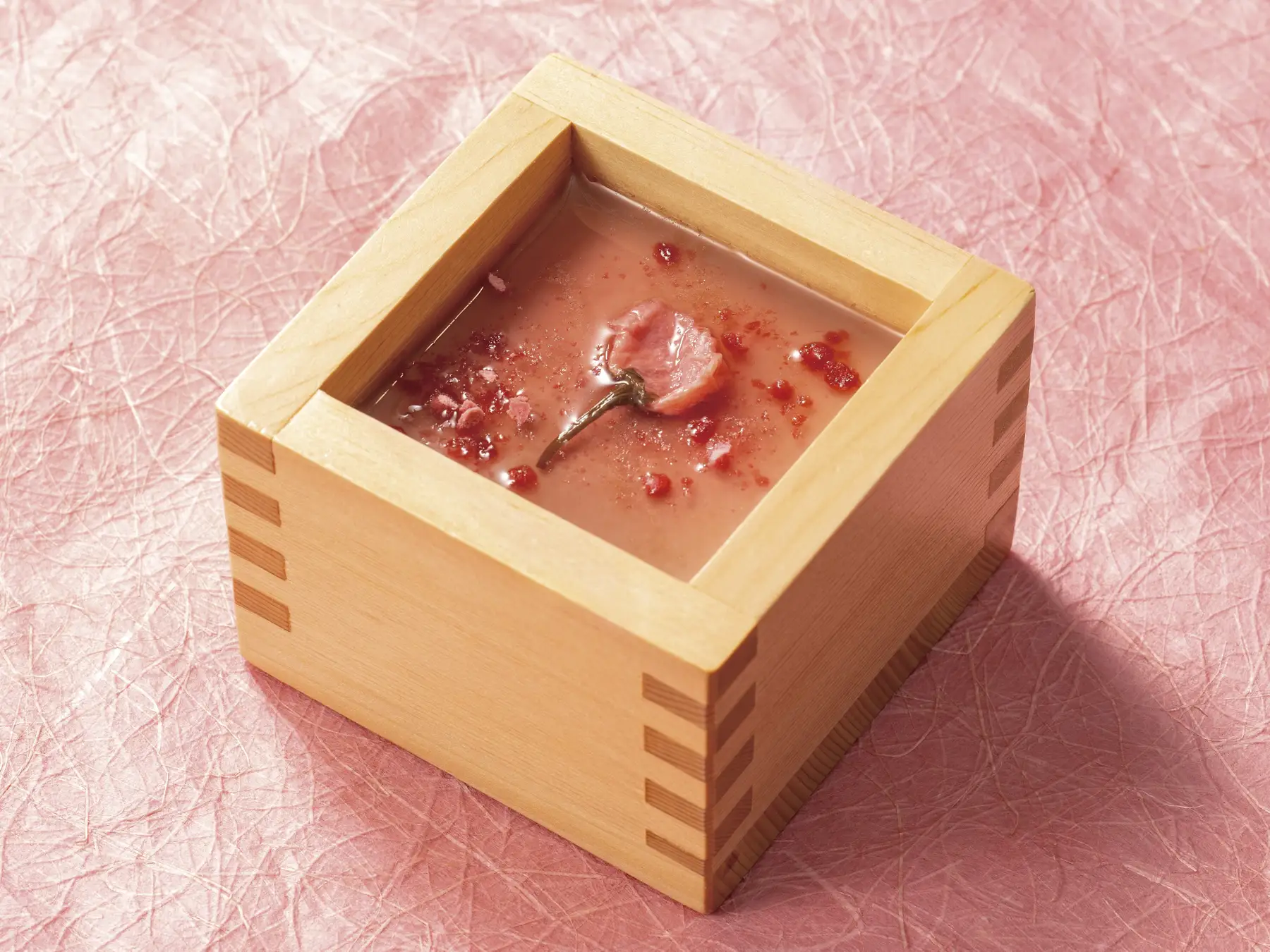 桜あん・豆乳仕立ての桜のパンナコッタ・桜のソースの3層で構成された、春限定のデザートです。