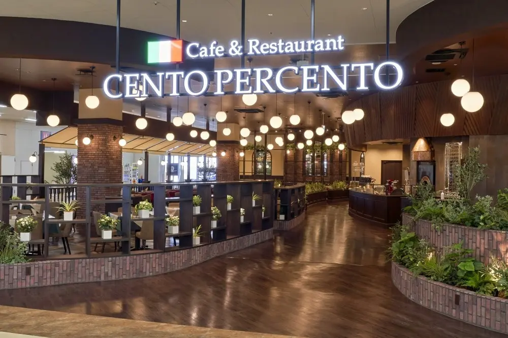 「cento percento(チェントペルチェント)」とは、イタリア語で“100%” の意味。忙しい日常から少しだけ離れて、お友達やご家族と気軽に楽しんでいただける場所を。本場のテイストを大切にしたイタリア料理を、シックでゆとりのある空間で提供する大型ホームセンター内のカジュアルレストランです。お一人でも、ご友人やご家族でも、気軽に普段使いできる家庭的な雰囲気とシーンを選ばない多彩なメニューの数々。飾りすぎないあたたかなサービスと、毎日食べても飽きることないシンプルなお料理で100%のおもてなしをご提供します。