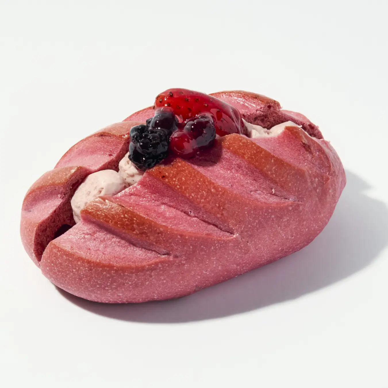 練りこんだビーツのヴィエノワ生地にいちごクリームを挟みました。