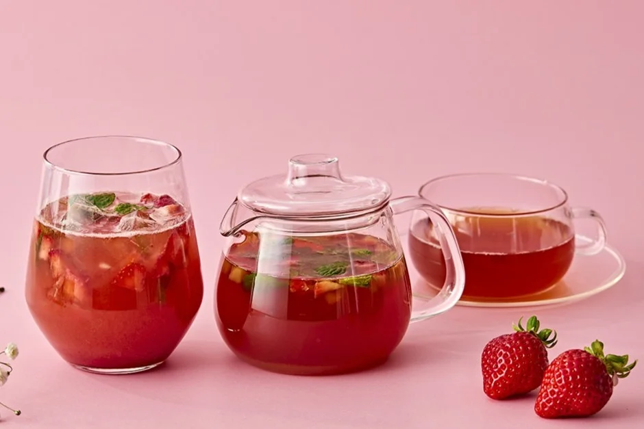 さらに「あまおう」をドリンクでも楽しんでいただける、フレーバーティーとティーソーダもご用意いたしました。甘酸っぱい果実感にエルダーフラワーの爽やかな香りを重ね、フレーバーティーにはミントをアクセントに、春らしく軽やかな味わいをお楽しみいただけます。