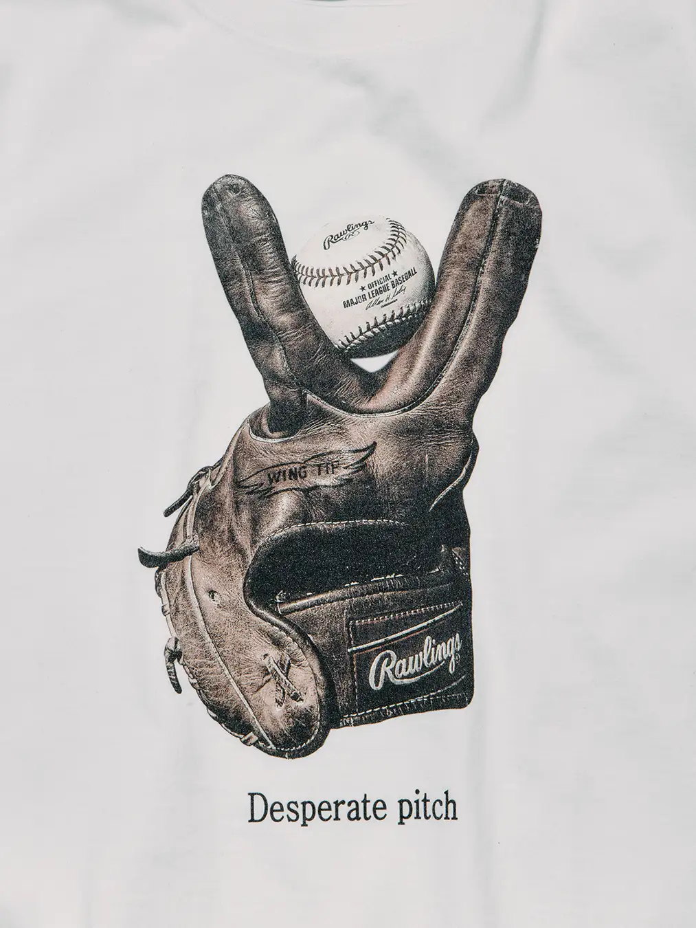 「DESPERATE PITCH(やけくそピッチ)」投手として160kmの速球を投げ、打者として本塁打王を獲得するなど、二刀流で世界を驚かせる現代のBASEBALL界。その次に驚かせるには、グラブで投げるしかない。そんなジョークを落とし込んだデザイン。