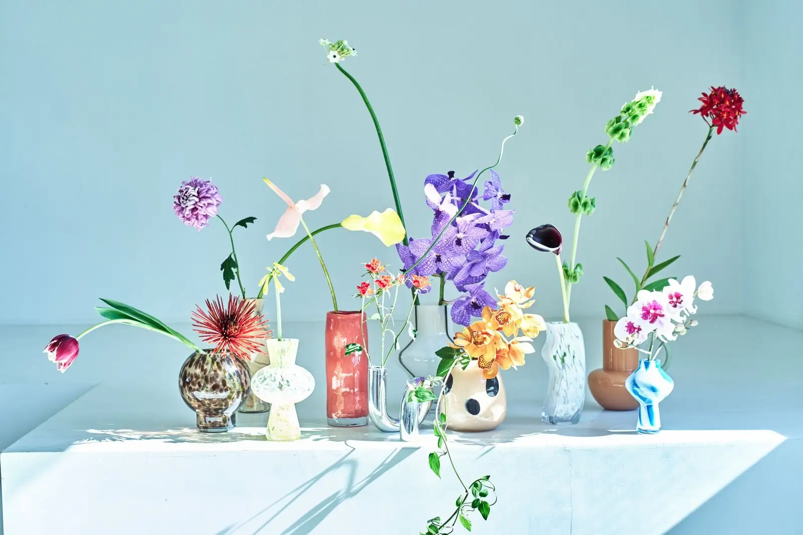 「一本の花でも空間を変え、花がない日もそっと佇む存在にしたい」―そんな想いから生まれた全17種類のフラワーベース。