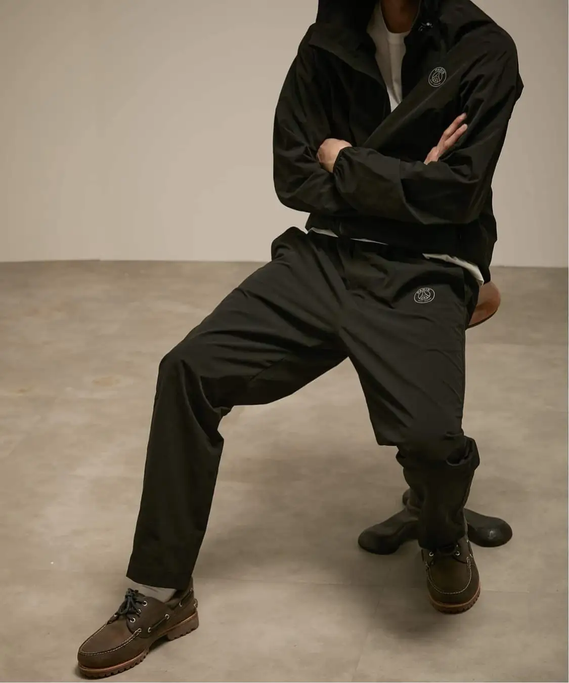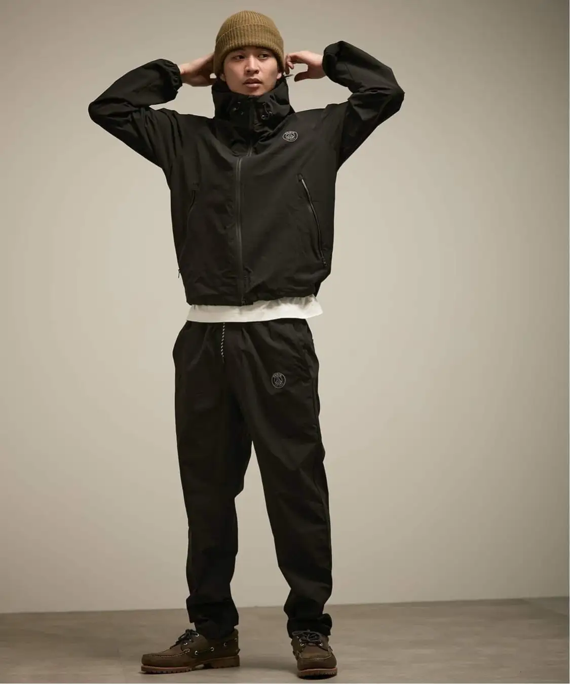 このセットアップの真骨頂は、付属のドローストリングバッグにジャケット・パンツの両方が収まる機動力にあります。