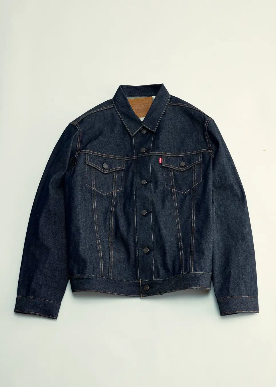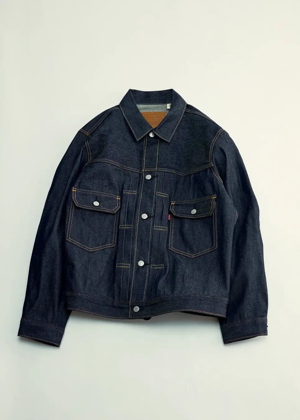 名作をベースに再構築したリジットデニム。14.75oz生地に、フロントはイエロー/他はオレンジステッチを採用し、経年変化も楽しめる仕様。