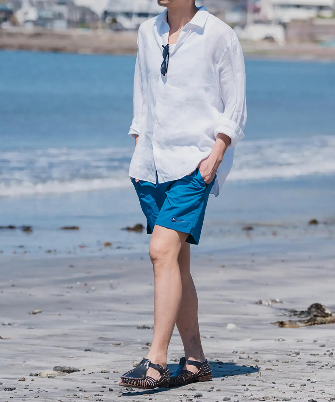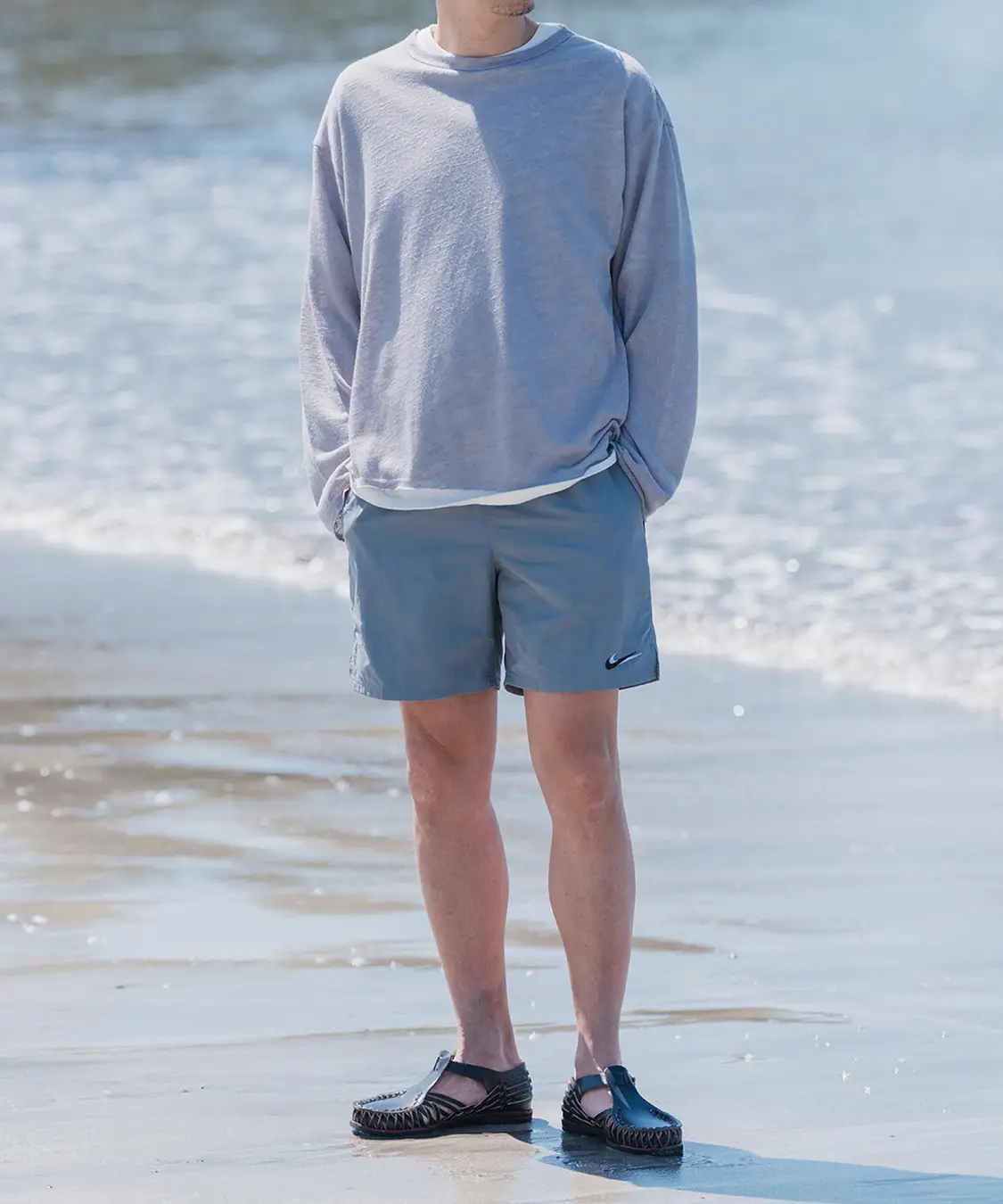 海やプールなどのアクティブなシーンはもちろんの事、デイリーな街着としても活躍するまさに水陸両用の万能ショーツ。