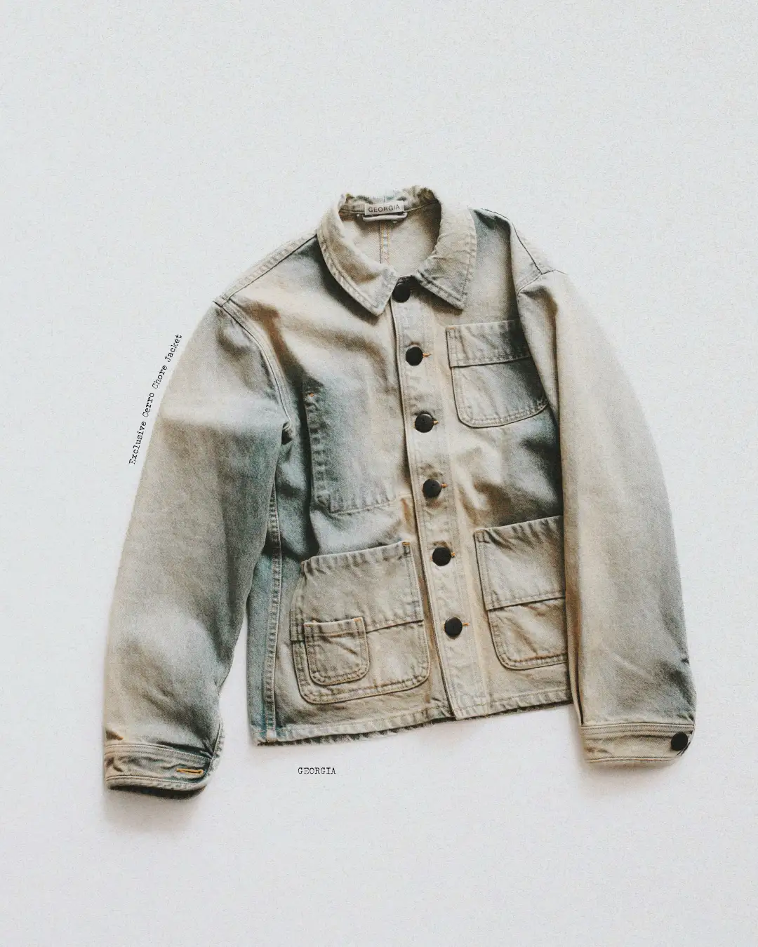 L’ÉCHOPPEとの別注では、カバーオール、デニムパンツにサンドブラストによるブリーチ加工を施しました。ヴィンテージの文脈に見られる自然な経年変化とは異なり、どこか非現実的なフェード感を持たせることで、新たな表情を引き出しています。
