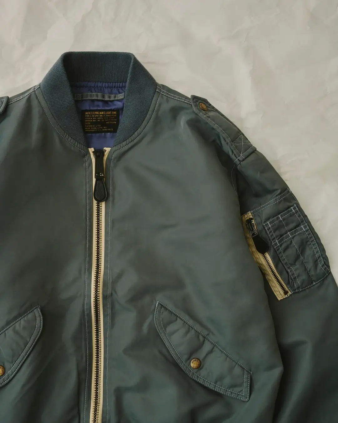 SPEC:MIL-J-7448Bをベースに、ヴィンテージの空気感と現代の着心地を編集した別注モデル。
