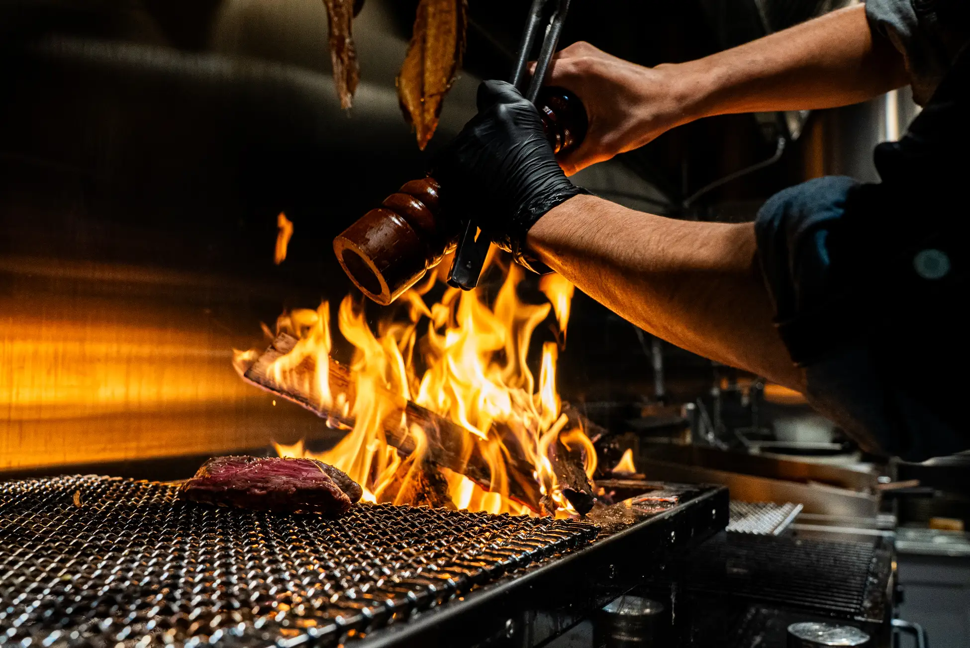 薪火の炎が余分な脂を落とし、シンプルな調理でありながら、ひと口ごとに奥行きのある味わいを生み出します。