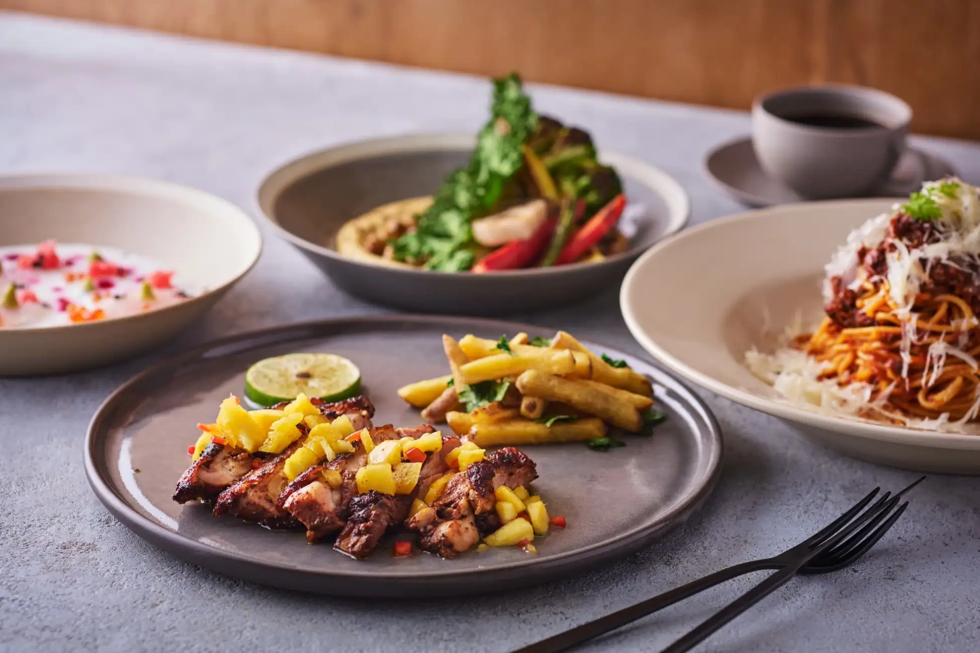 2025年に25周年を迎えた「J.S. BURGERS CAFE」が大人のダイニングへと進化し登場。 薪火で丁寧に焼き上げるグリル料理や旬の食材を活かしたメニューは、五感で楽しむ特別な体験に。 肩ひじ張らずにゆったり過ごせる空間は、日常の延長でありながら非日常の贅沢を演出します。さまざまなひと時に寄り添い、訪れるすべての時 間を特別な時間としてお届けします。