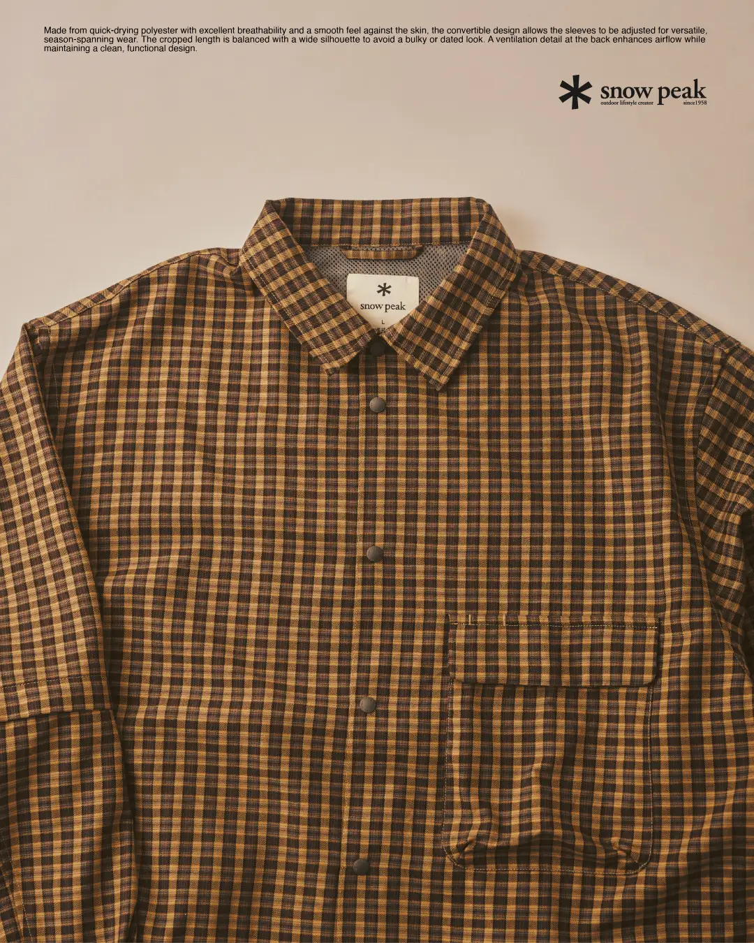 コンバーチブル仕様とベンチレーションが実用性を支え、オリジナルのチェック柄とクロップ丈で現代的にアップデートしたチェックシャツの二型展開。