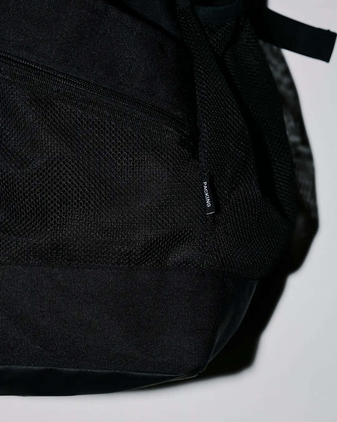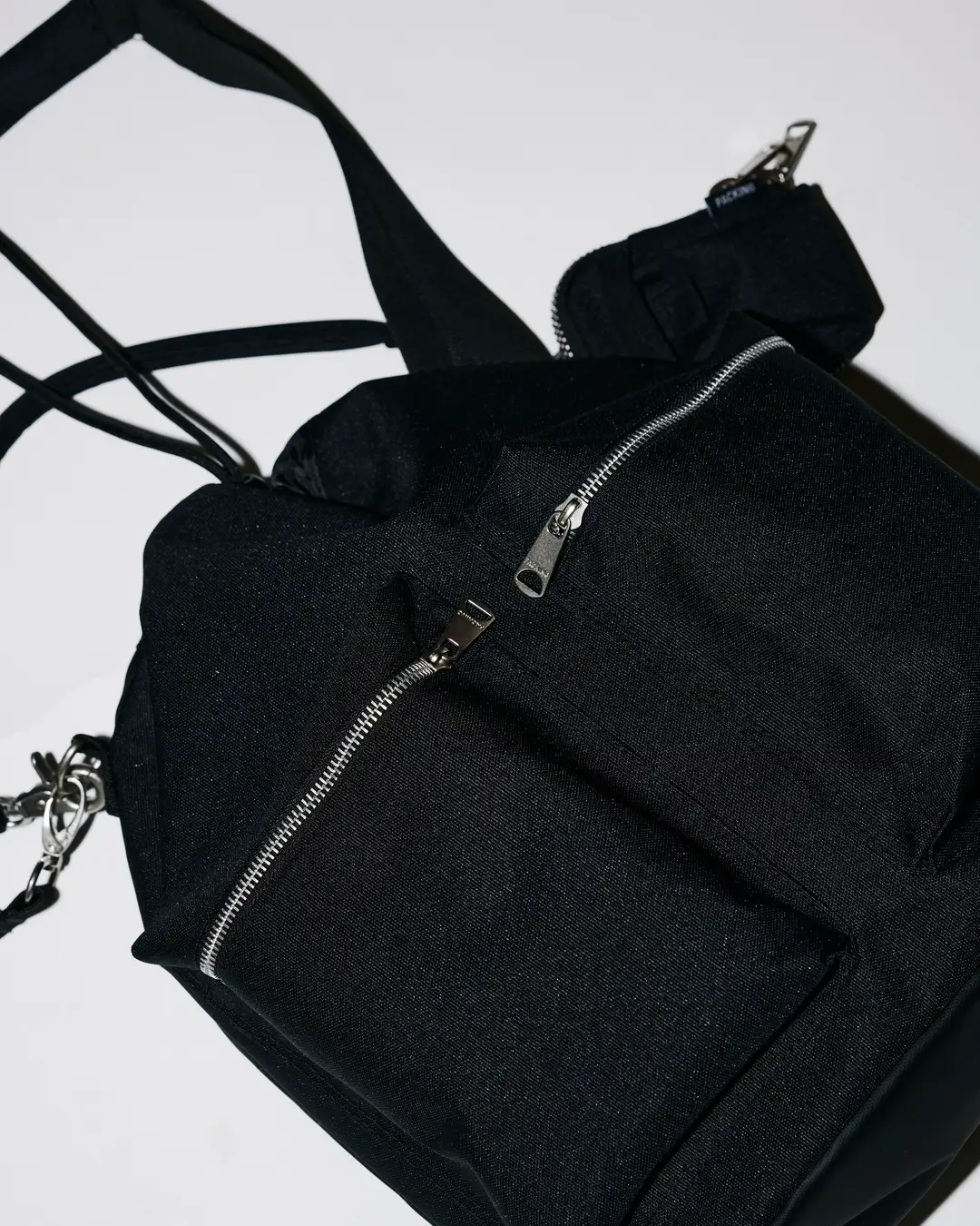 新作「PACKING SMU 2WAY DRAWSTRING BAG」は、PACKINGの人気モデルをベースに、relume流の機能性を加えた別注アイテム。手持ちと肩掛けの2WAY仕様に加え、フロントにはマチ付きのジップポケットを2つ配置。さらに、同素材のミニポーチが付属し、小物の整理にも配慮した設計となっている。メイン収納部は巾着型で大きく開き、荷物の出し入れもスムーズ。ブラック一色でまとめたミニマルなデザインはスタイリングを選ばず、ユニセックスで使用可能。デイリーからギフトまで対応する汎用性の高いバッグだ。