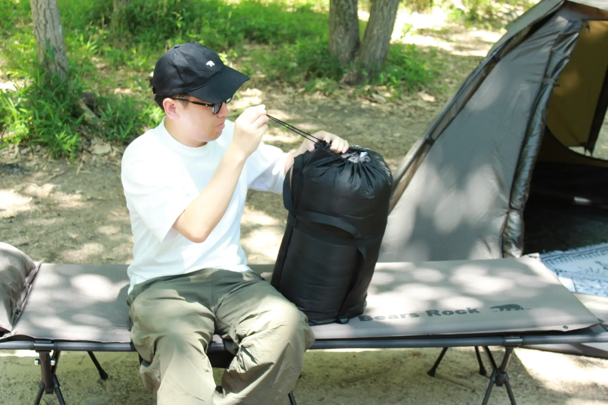 Bears Rockの「-15℃マミー型センタジッパー」は、ふっくらもふもふの中綿であたたかく包み込まれる寝心地です。