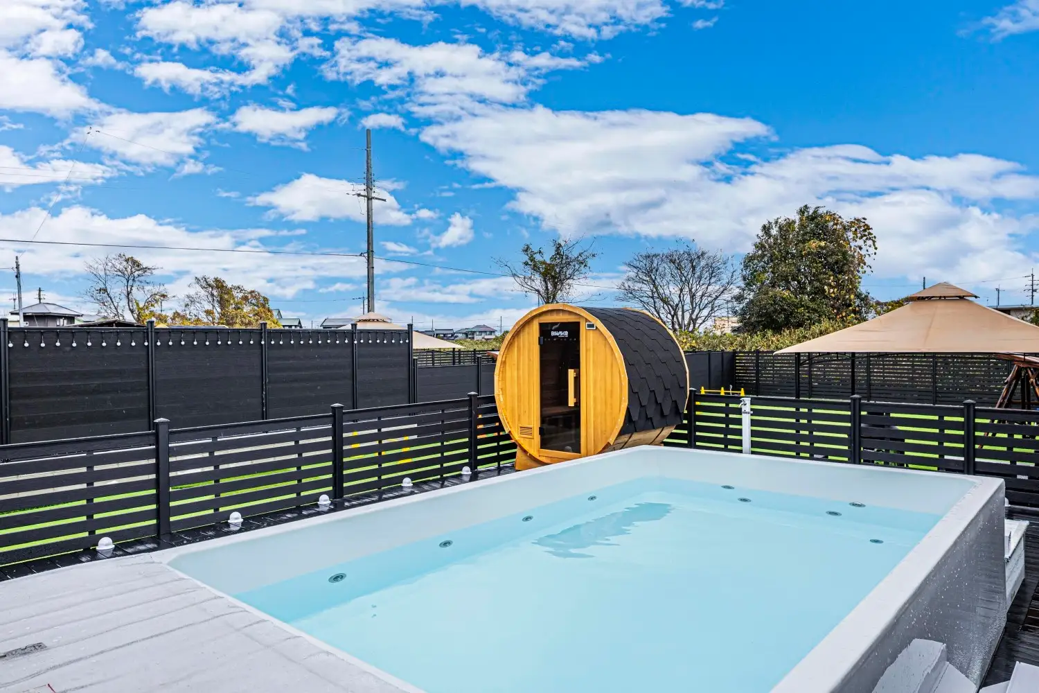 自然に包まれた空間で楽しめるサウナや、大型のプライベートジャグジーも完備。