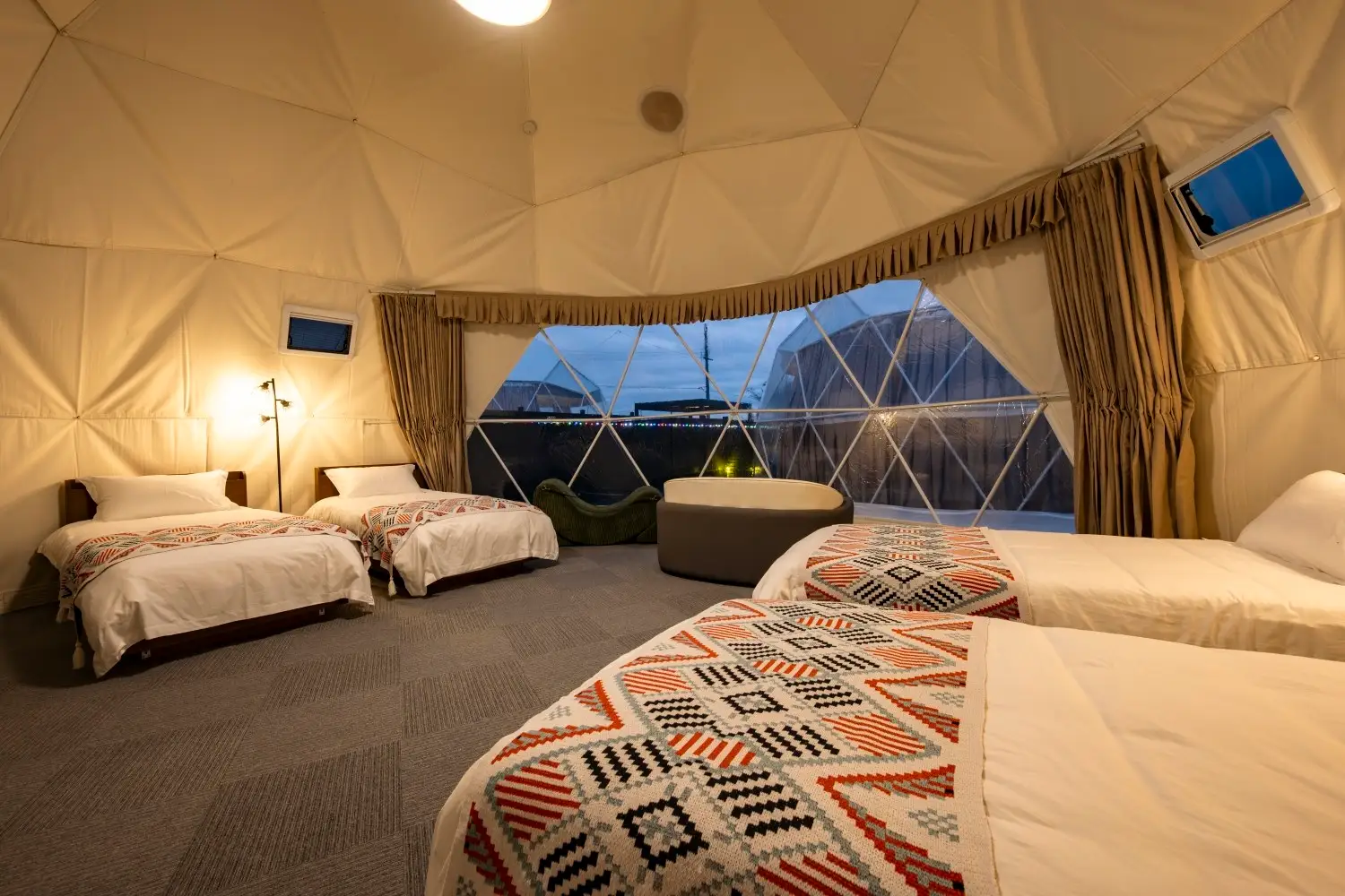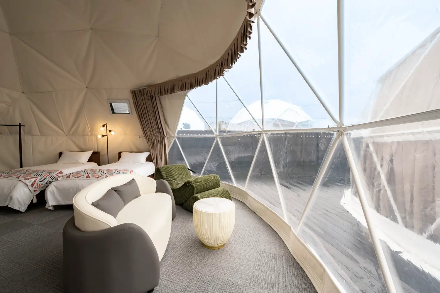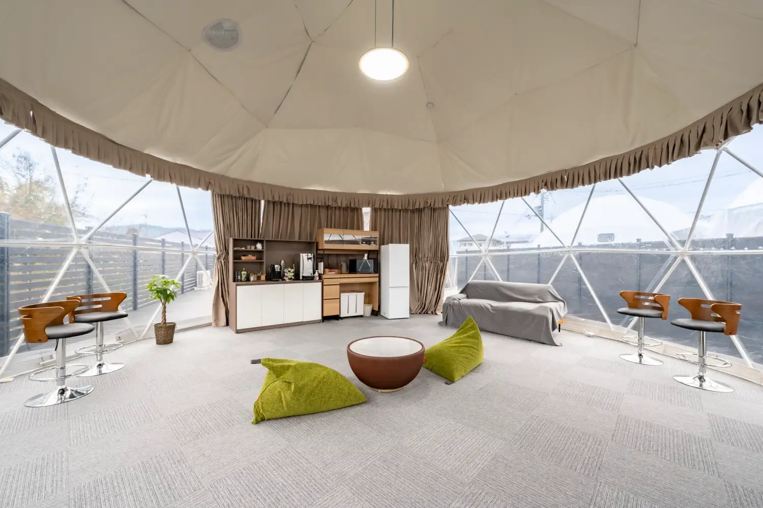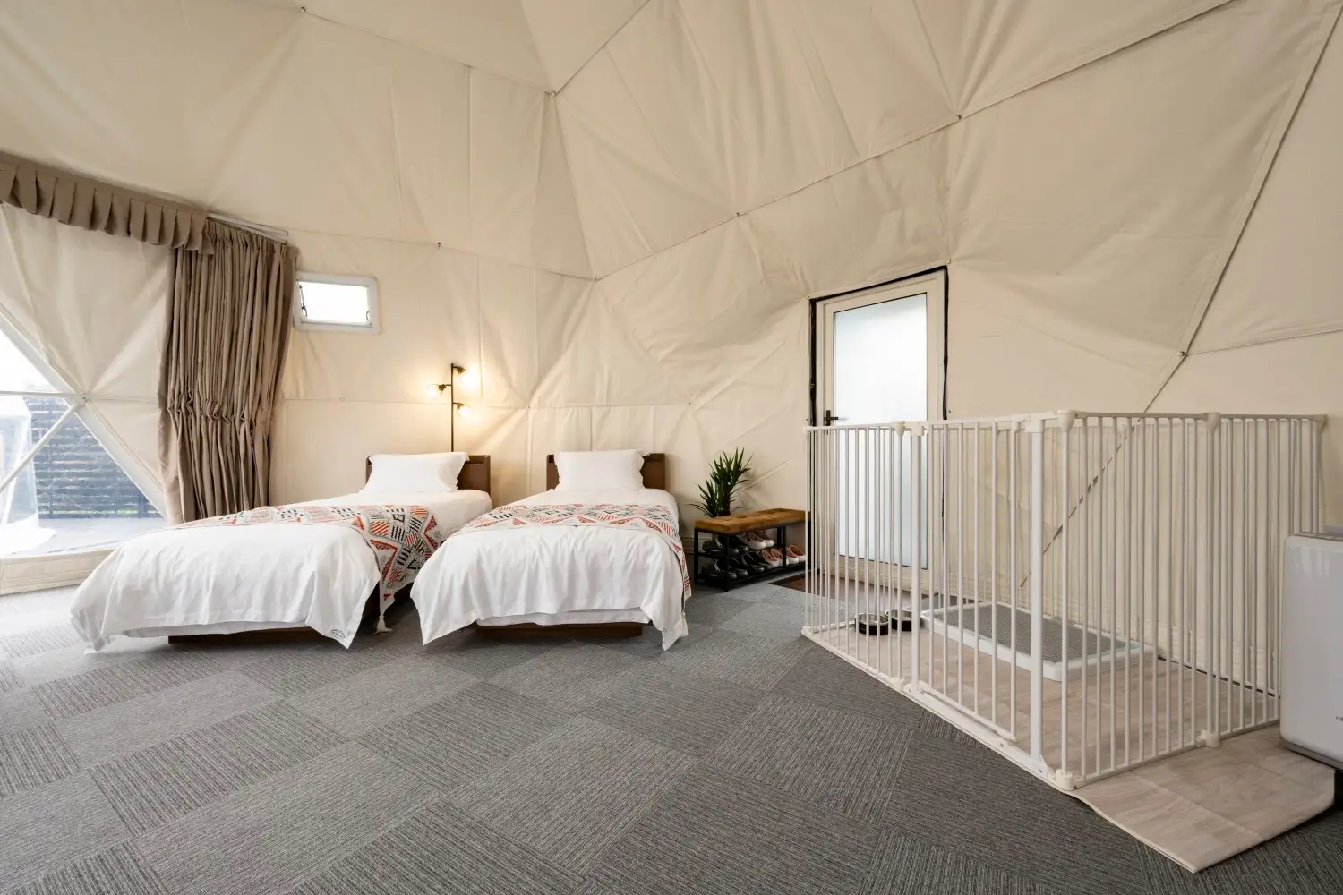 滋賀県を代表する人気グランピング施設「グランドーム滋賀高島」がプロデュースし、わんちゃんとの滞在に必要な快適さと安心を細部まで追求しました。